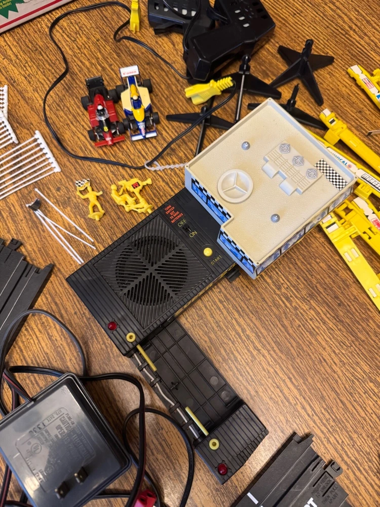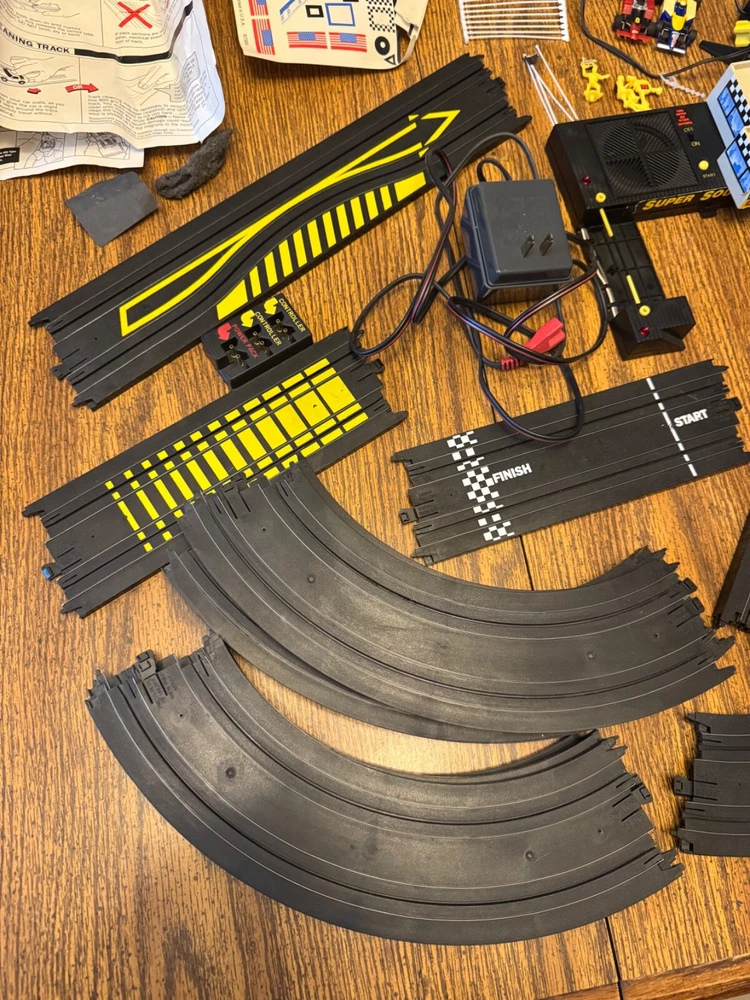 This set looks like it has all the parts except the bottom section of the control tower. I replaced the batteries. The sound works. I did not test the track. This has been stored in a closet for years in its original box. No returns. Nonsmoking home.