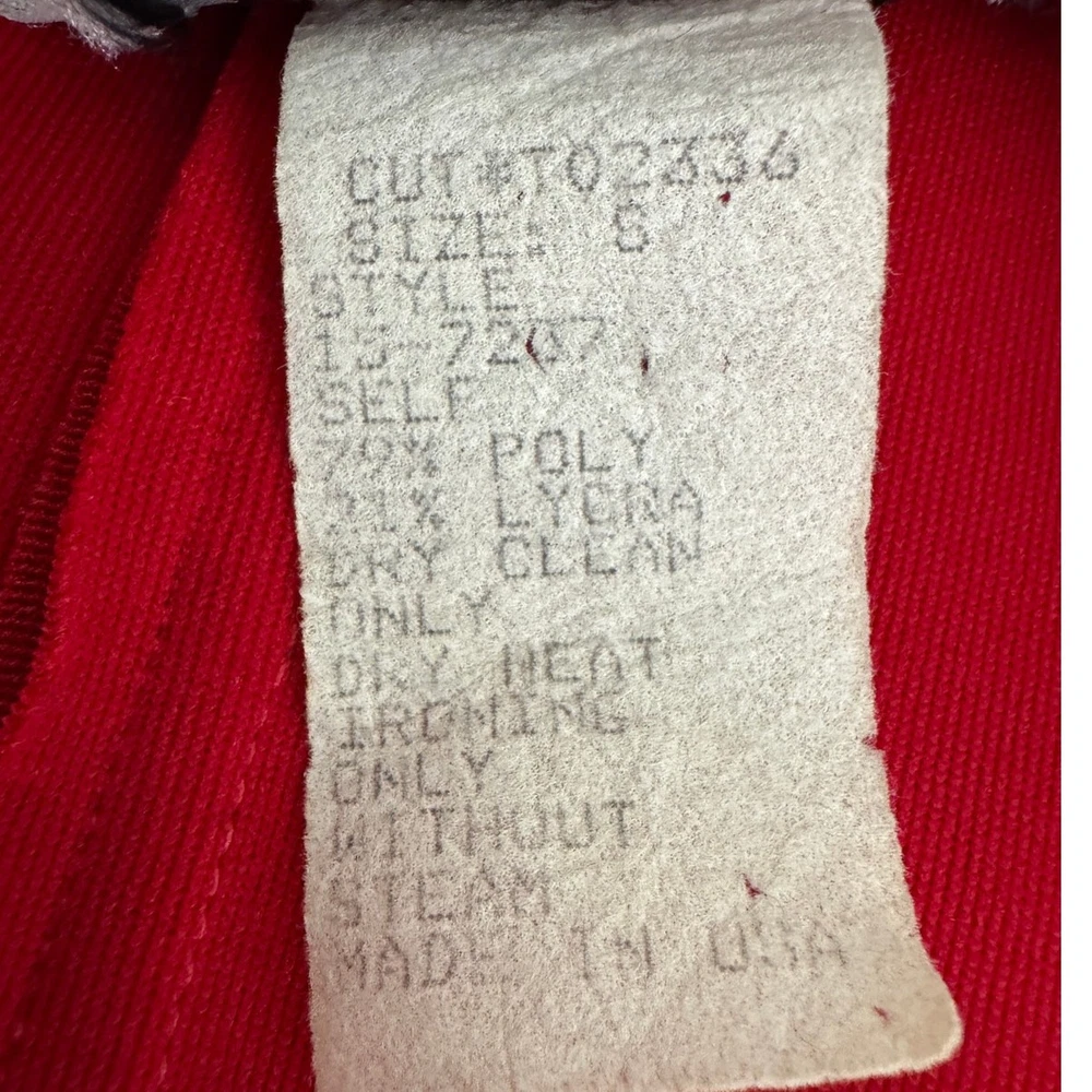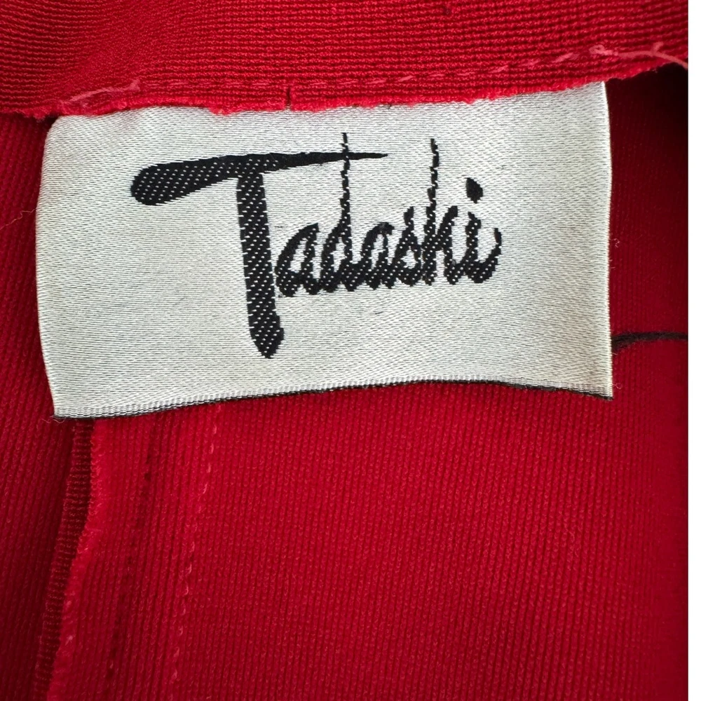 RAD vintage 80s Tadashi Shoji retro future jumpsuit! Zip front And button neck. Branded buttons. Stirrup pants. Padded shoulders. Made of stretch. Sofa king cool fashion history! Made in the USA back in its day Measures flat unstretched approximately Shoulder 15" Chest 16 Waist 13 Sleeve 23 Rise 7.5 Inseam 26 Length 52 •Size: fits modern XS and S •Condition: Excellent vintage – some minor flaws in the lycra, a loose thread here or there, a bit of discoloration, nothing keeping it from being AWESOME •Color: red & gold Bundle for combined shipping! Pictures are part of the description. Color may vary by screen. Sizes vary between designers. ALL preowned items can be expected to show normal signs of wear. Smoke free, DOG FRIENDLY home. Tags: vintage 80s retro glam party wear statement piece designer silhouette collector wardrobe dance clubwear urban chic halloween costume theater theatre david bowie ziggy stardust rock and roll archival sexy bodycon