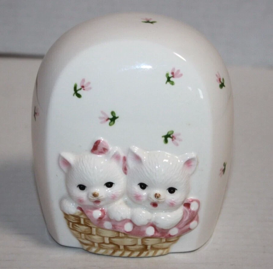 Vintage Takahashi Cats In Basket Ceramic Coin Bank . Approx. 4 1/2". Any photos used are of the item that you will be receiving, they are not stock photos. Will combine shipping costs for multiple purchases. Shipments to the Continental U.S. only. Sorry, No APO or FPO. Please pay promptly. Please visit our Ebay store for more great items. Combined shipping is not automatic. If you're not sure how to do it, Please contact us and we'll be happy to help.
