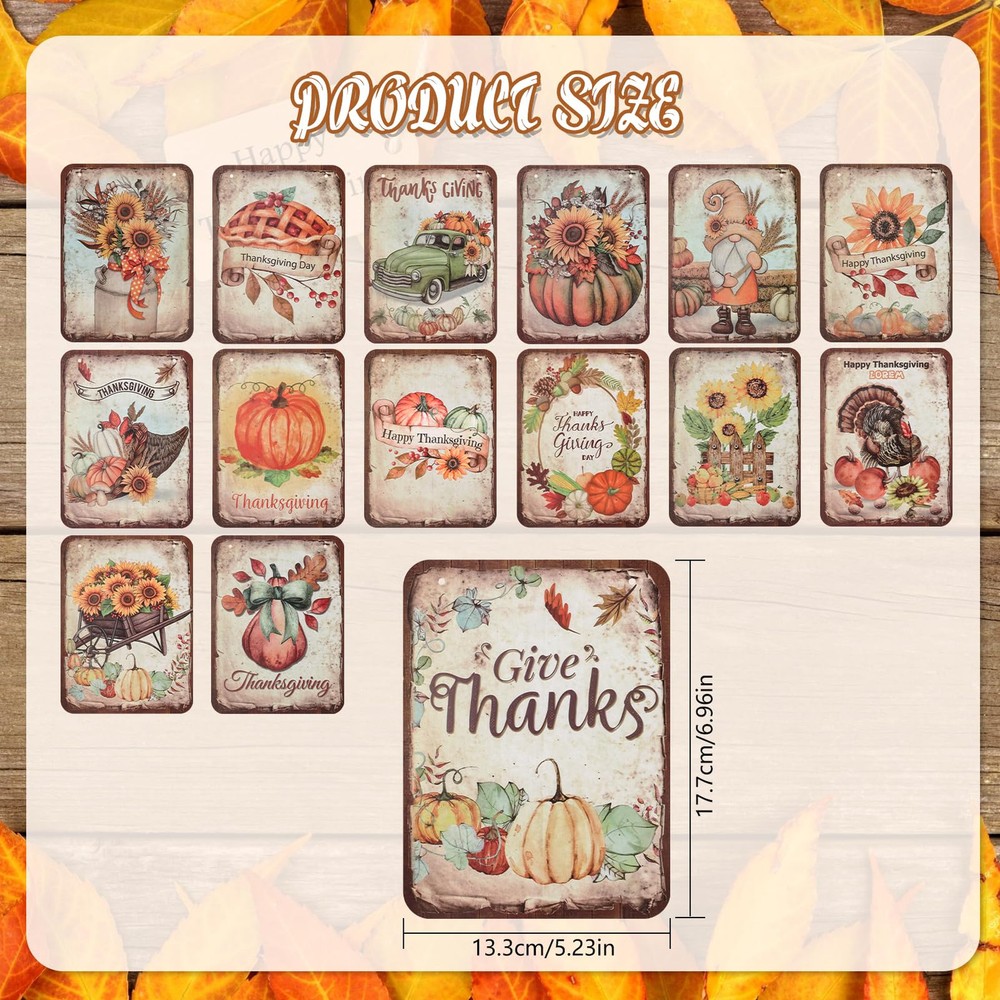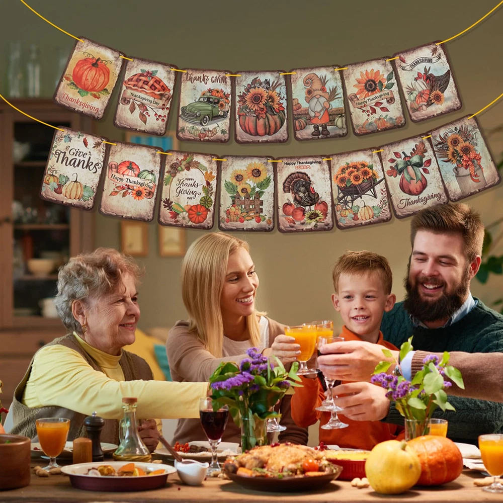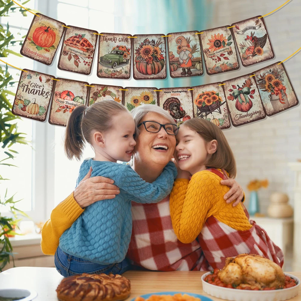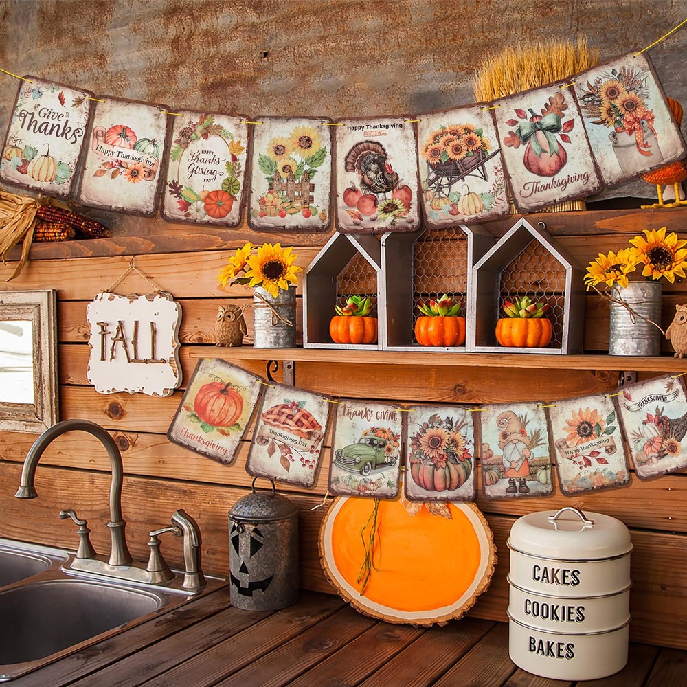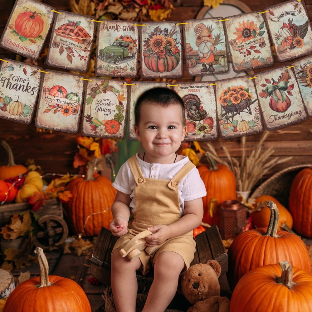 You will receive: 1×Vintage Thanksgiving banner (15pcs cardboard ) 1×rope Specifications: Color: as shown in the picture Size: Each cardboard measures 13.3×17.7cm/5.3*7 inches Material: High quality cardboard High-quality and Durable: Our Vintage Thanksgiving banner are made of high-quality thick cardboard, they are durable and not easy to deform and tear, and can be reused for a long time! These paper cards have very smooth surfaces, bright colors and clear patterns. Perfect Size : Each paper card of Vintage Thanksgiving banner measures 5.3*7 inch, Bunting Banner are punched with holes, can be hang on wall, doorway, mantel, window, outdoor tree branch and anywhere to add party atmosphere Easy to Hang: This Fall Harvest Thanksgiving Banner have punched with holes and comes with long rope, You can adjust the distance of each piece of paper to achieve your satisfactory results! Light weight, convenient to carry, perfect for outdoor indoor Harvest Thanksgiving events celebrate! JUST FOR LOVE- Thanksgiving day is coming. It's time to throw a party for your Family. Use the Vintage Thanksgiving banner as the party decor or cute photo backdrop. It's a perfect way to show your love and gratitude Suitable for Thanksgiving Occasion Decoration: The Thanksgiving Vintage banner is the perfect choice for your Harvest Thanksgiving party, can be used as photo backdrops, wall decor, cake table banner, celebration, photo studio photography, photo prop and so on.
