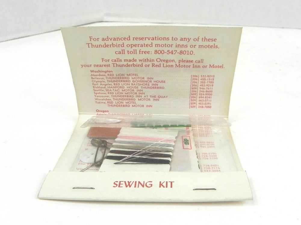 VINTAGE THUNDERBIRD MOTOR INNS SEWING KIT UNOPENED/PRE-OWNED VINTAGE THUNDERBIRD MOTOR INNS SEWING KIT UNOPENED/PRE-OWNED See photos below for details. Contents included will be pictured. ABOUT US Jones Vintage Parts has been a family-owned business for over 40 years. We specialize in rare and vintage NOS and used parts for all makes and models from the teens to the 70s. We're passionate about uncovering and restoring the stories of the treasures from your grandparents and great grandparents history. We believe in breathing new life into the world's first modes of transportation. New vintage all the time! SHIPPING INFORMATION Purchased items will generally ship Monday through Friday, within 3 days via USPS Flat Rate or First Class upon payment receipt. Larger items will be shipped via FedEx Ground or UPS. Multiple same-day purchases will be combined for discounted shipping (request a revised invoice to receive bulk shipping discount or notify us of future purchases). International shipping also available. RETURN POLICY Our goal is your satisfaction. If you are unhappy with your order for any reason items may be returned for parts credit within three (3) days of receipt, and you will be charged a 10% restocking fee. There are no shipping refunds. Exchanges will be billed appropriate freight. All return items must be complete, undamaged, unaltered and in resale condition. You may be interested in our other eBay listings . Powered by SixBit's eCommerce Solution