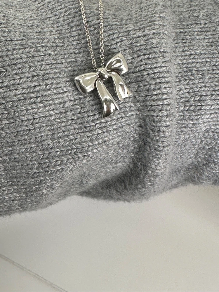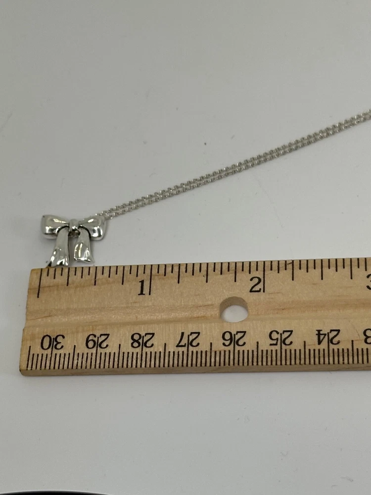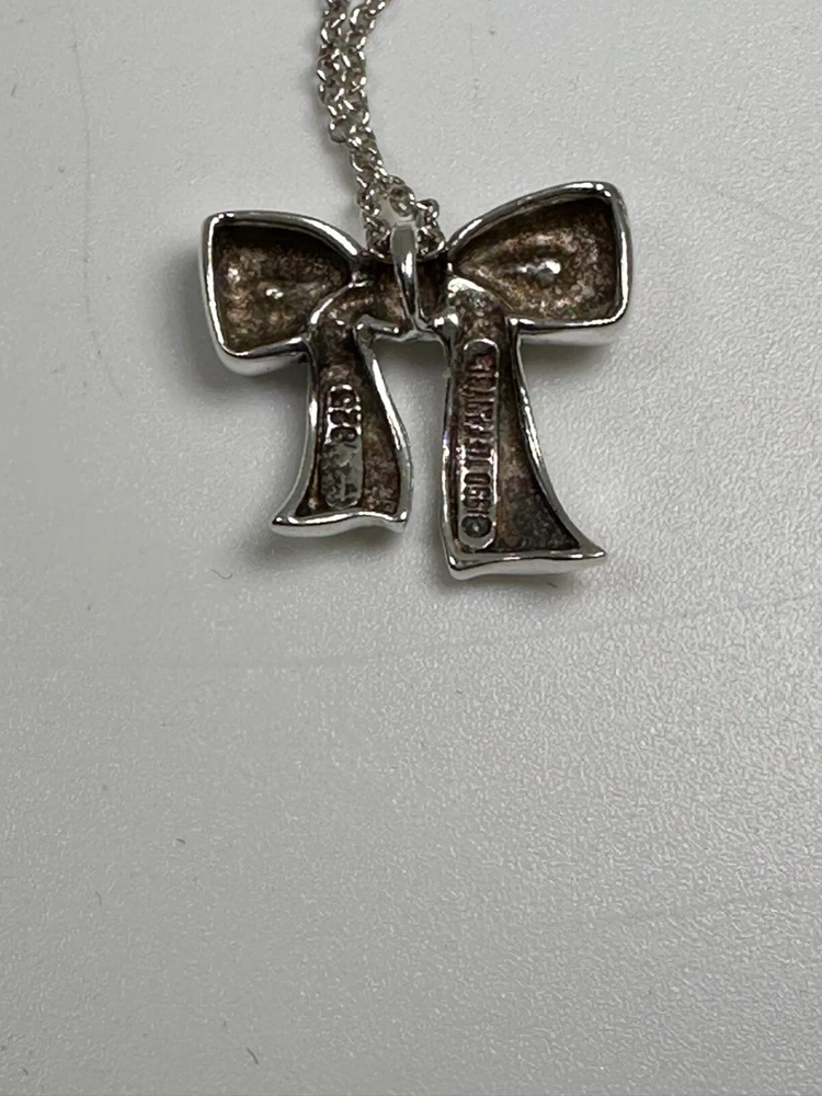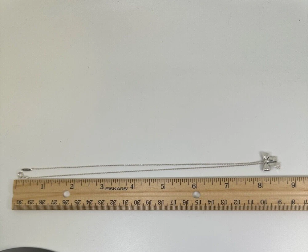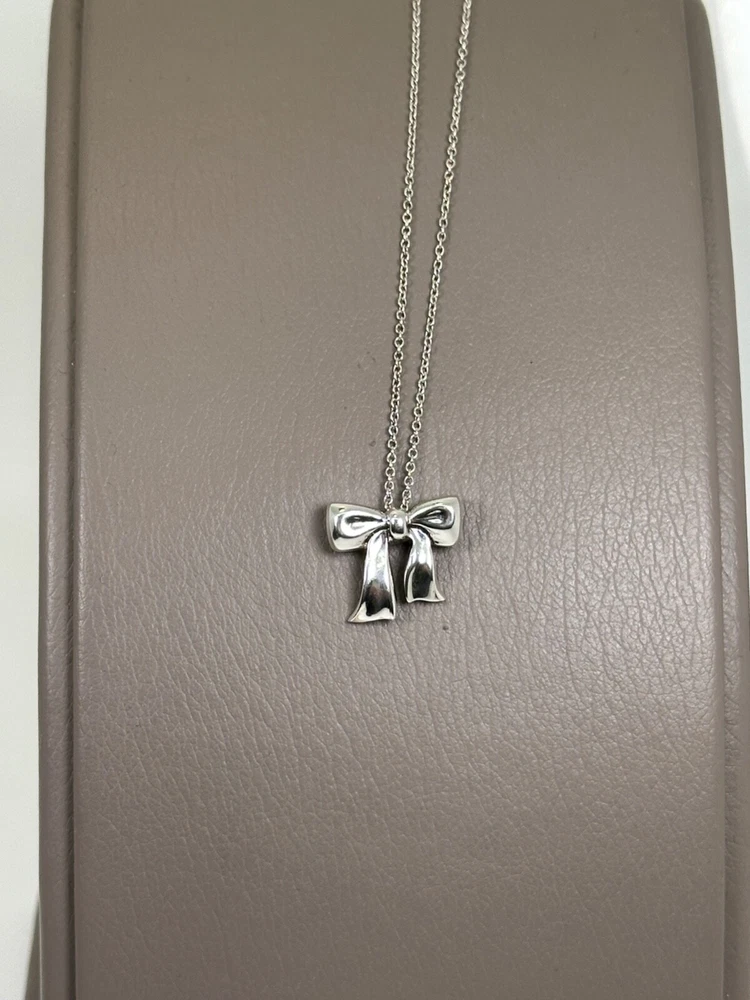 TIFFANY & CO. VINTAGE BOW NECKLACE IN EXCELLENT PREOWNED CONDITION. THIS NECKLACE IS QUINTESSENTIAL TIFFANY! THE BOW SHINES BEAUTIFULLY AND THE NECKLACE LENGTH IS LOVELY SO THE BOW SITS UP HIGH. THIS PIECE IS READY TO GIFT AND WEAR. PLEASE VIEW ALL PHOTOS TO ASSIST IN YOUR DECISION.