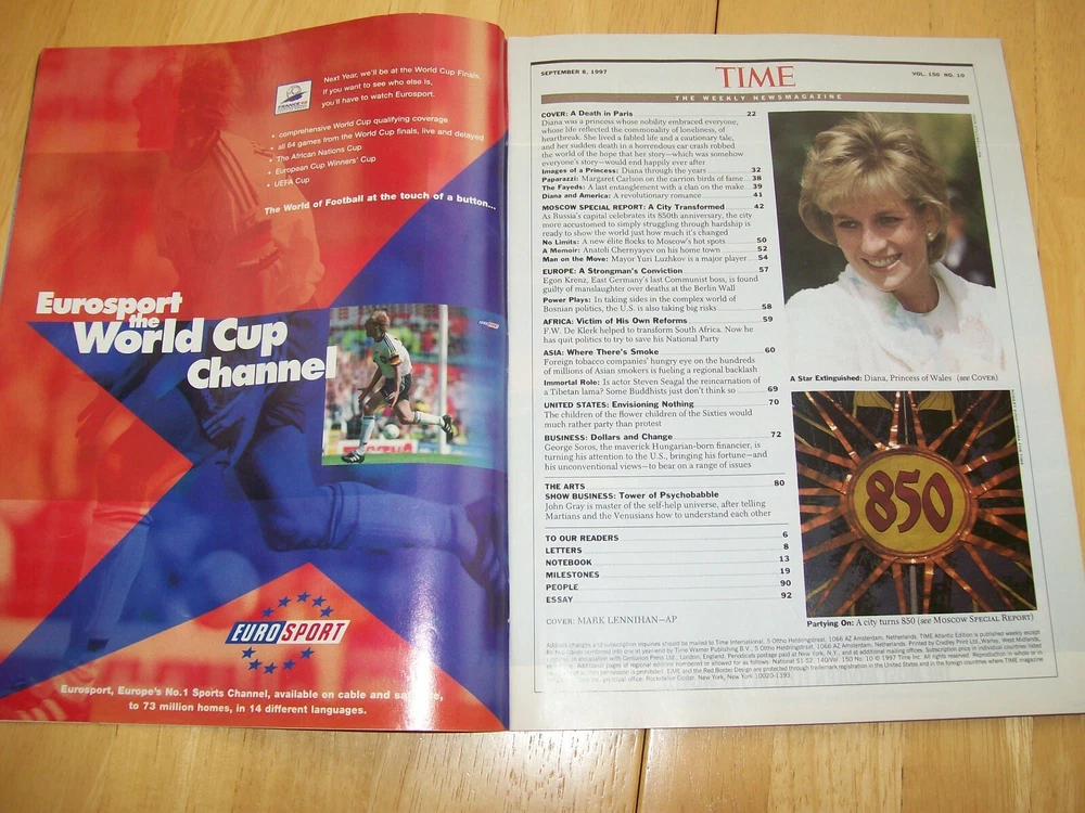 Up for Auction, Vintage/Original Time Magazine, Princess Diana Memorial Issue from September 8, 1997.. . ***Rare, original Time magazine with the Princess Diana memorial after her passing...from my personal stash and has light wear on the cover but inside is clean ... ***Shipping is ***FREE*** w/ USPS Ground Advantage with tracking included..... Feel free to email me w/ any questions!!!