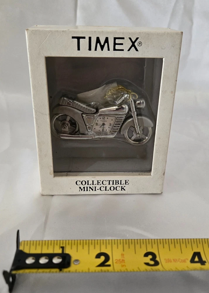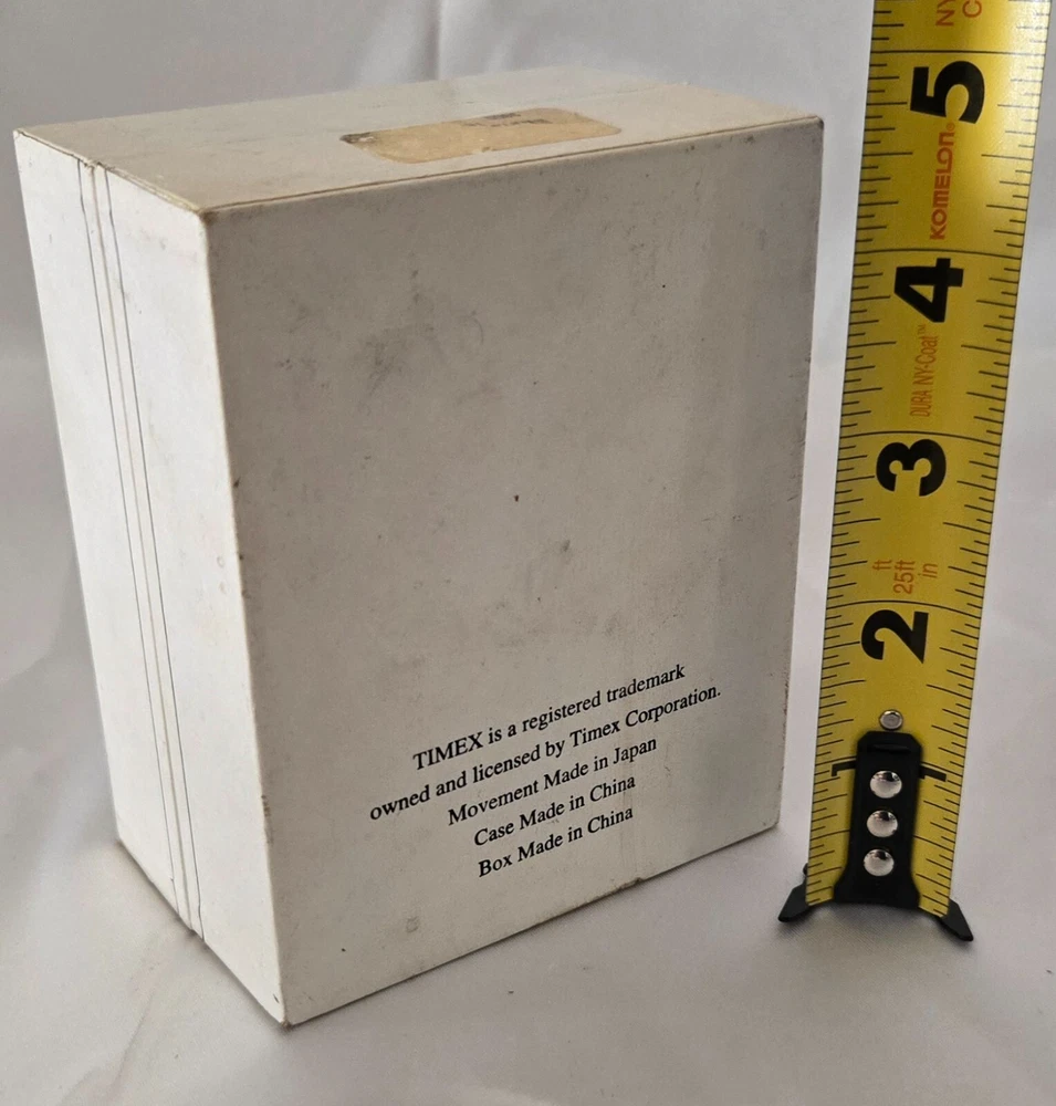 This vintage Timex collectible mini clock is a must-have for any clock enthusiast. The clock is battery-powered with a quartz movement and comes in its original box. The silver color and metal material make it a sleek and stylish addition to any collection. The clock features a miniature design and is perfect for decorative purposes. It is an original piece from the late 20th century (1970-1999) and was manufactured in China. The Timex brand is well-known for its quality and durability, making this clock a great addition to any collection.