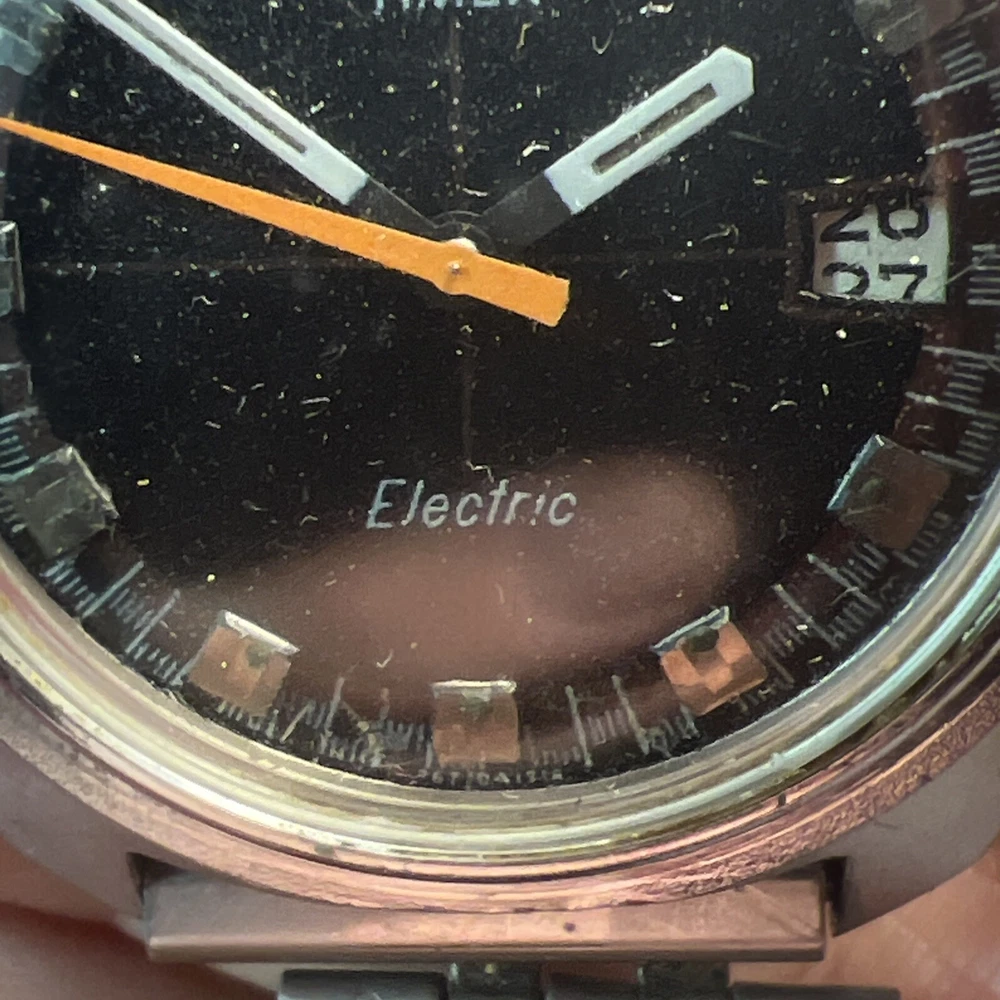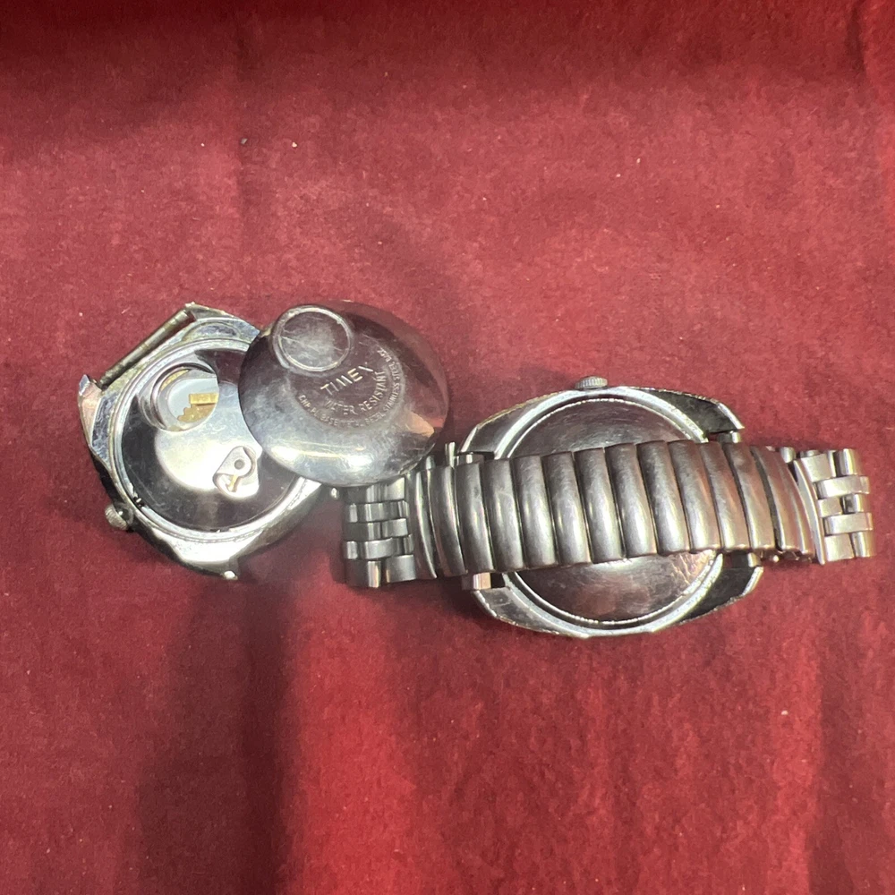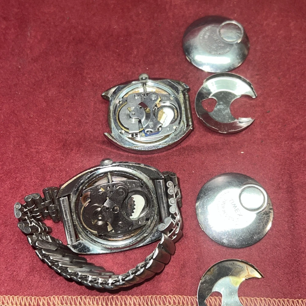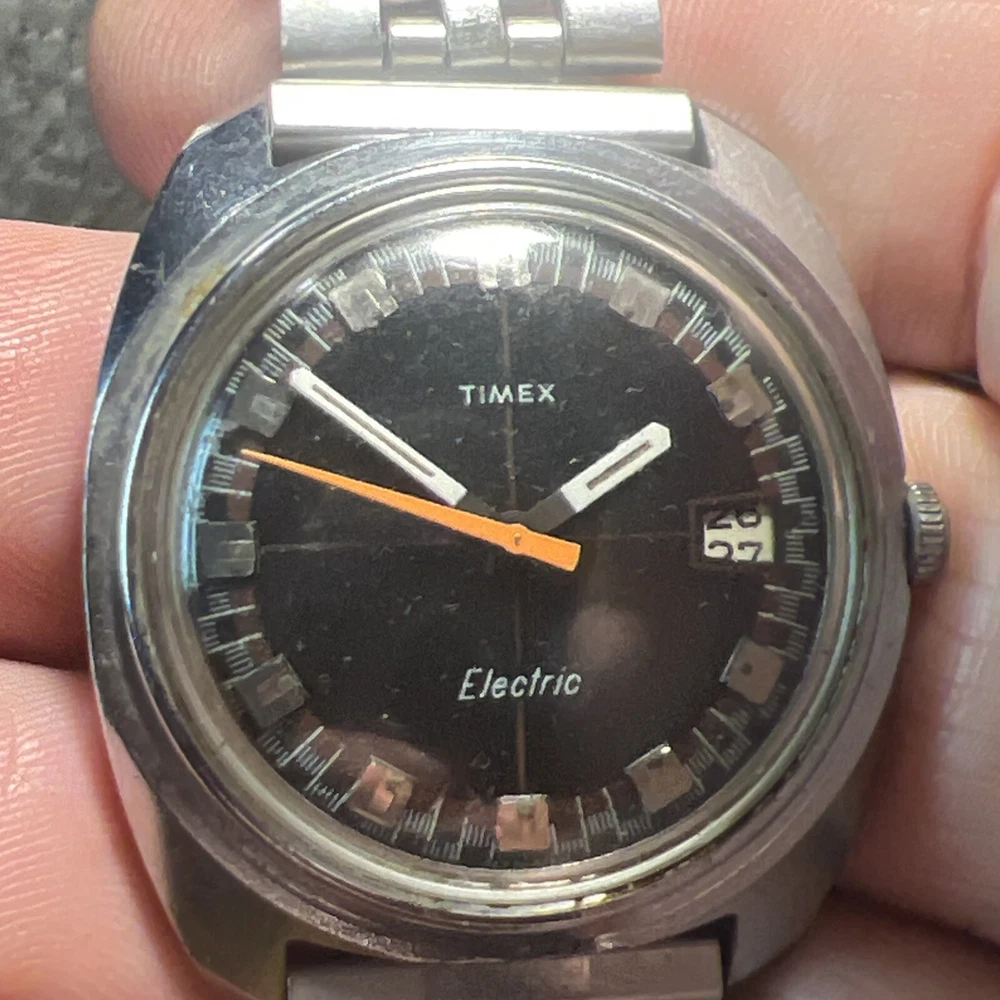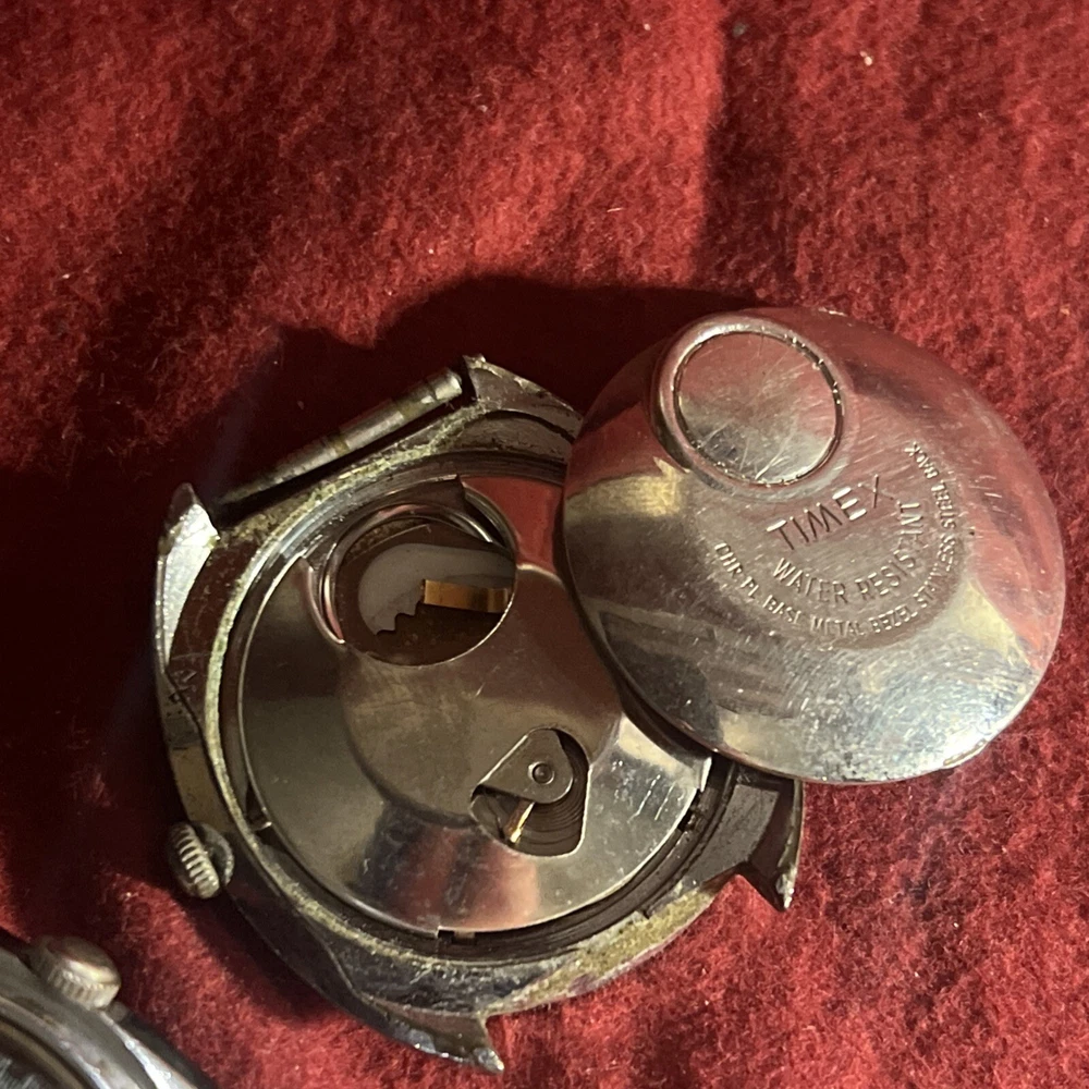 Vintage Timex divers watch Black Dial / Orange Seconds Hand -for Restoration! Missing bezel and looks like movement has missing parts! I’m including a second Timex electric and possibly you can exchange movements? I’m not sure if the second Timex movement works or not! But it looks complete! See pics!! Both for parts repair!! As is as seen as pictured… Please read below: Please review item specifics, and pictures for best details!! Please ask questions and good luck bidding! If any issue with purchase or arrival condition such as not as described, please reach out to me before posting feedback and or opening a case and I will make it right!! My wish is for you to have a happy buying experience and to enjoy my items!! Please note about vintage items. Unless marked new or new old stock, they are sold in used, as-is, pre-owned condition. Because of the age of these items they may have some wear, imperfections and signs of use, age and time… "International buyers " please note: Import duties, taxes, and charges aren't included in the item price or postage cost. These charges are the buyer's responsibility. “Please check with your country's customs office to determine what these additional costs will be, prior to bidding or buying." Shipping international via the eBay international Shipping method! ** Due to the nature of used/vintage watches, I do not guarantee long term functionality and accuracy... for best performance always have older watches serviced!! ** In regard to water resistance and or waterproof: the water resistance rating, if any, is based on the manufacturer's marking, not an actual test by me. I do not recommend using any of my used watches in submerged water environment such as swimming or shower or ocean!