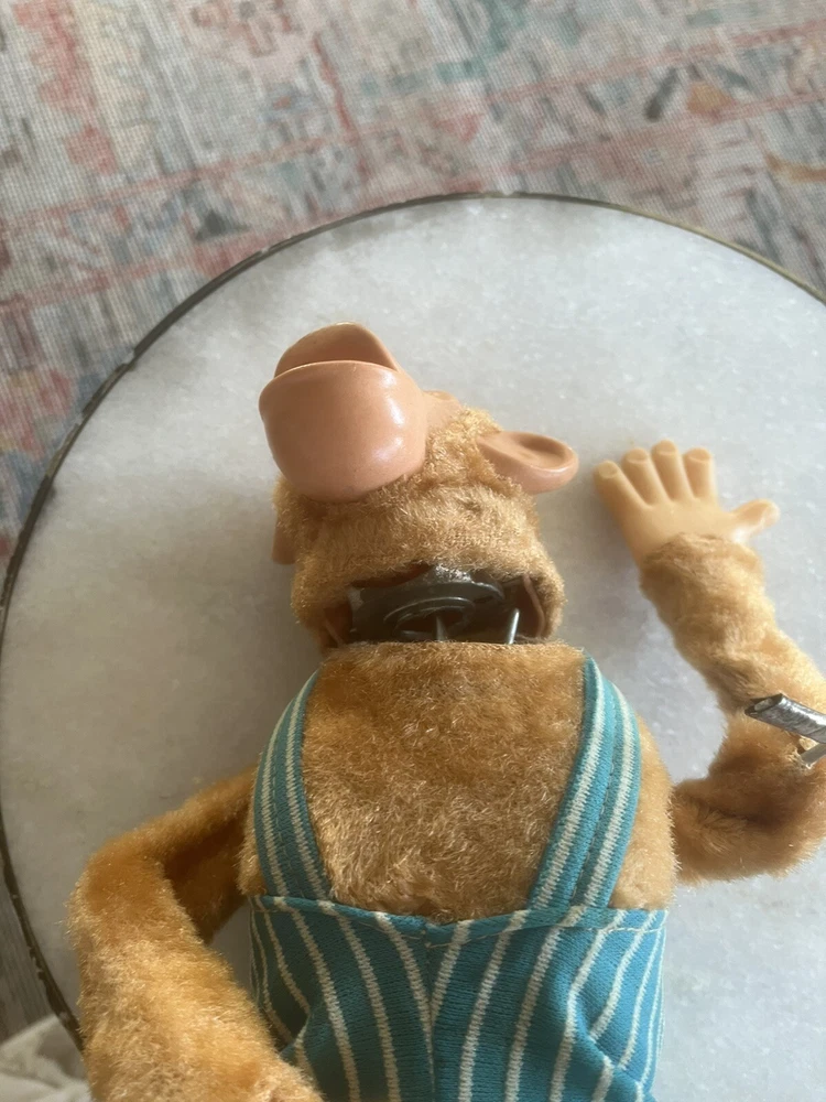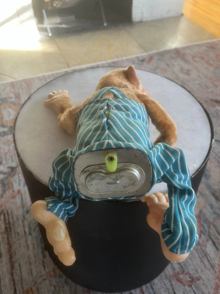 Vintage Tin And Fabric Battery-Operated Monkey. Not Working. For Parts/Repair