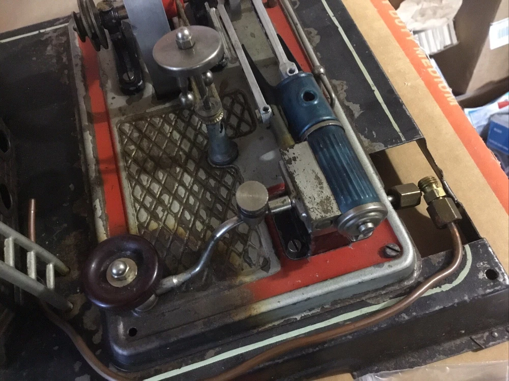 Vintage Tin Model Steam Engine Cylinder Oil 3 Esbit Solid Fuel Combustible