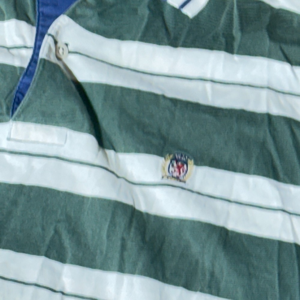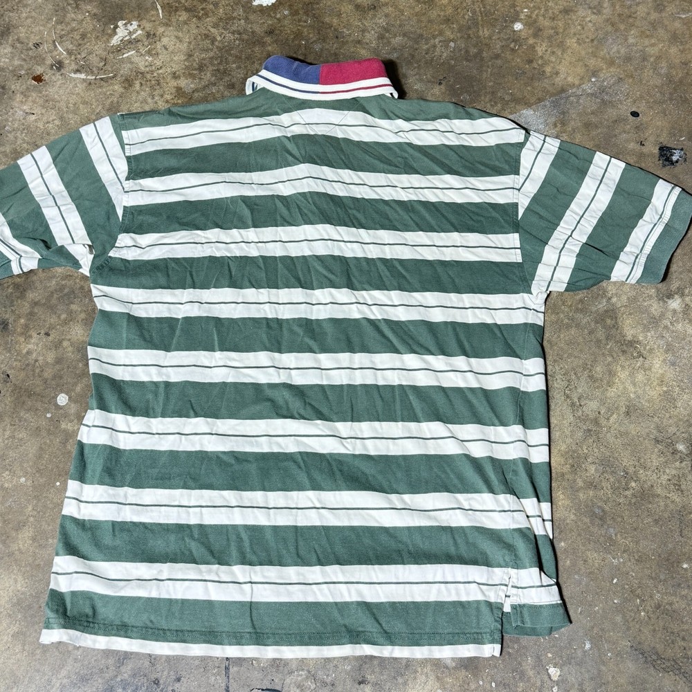 The product is a vintage Tommy Hilfiger polo shirt in size medium. It is a classic men's polo with a regular fit and medium fabric wash, featuring the iconic Tommy Hilfiger character. The shirt comes in a multicolor design, adding a stylish touch to any man's wardrobe. Perfect for casual or semi-casual occasions, this Tommy Hilfiger polo shirt is a timeless piece that embodies quality and sophistication.