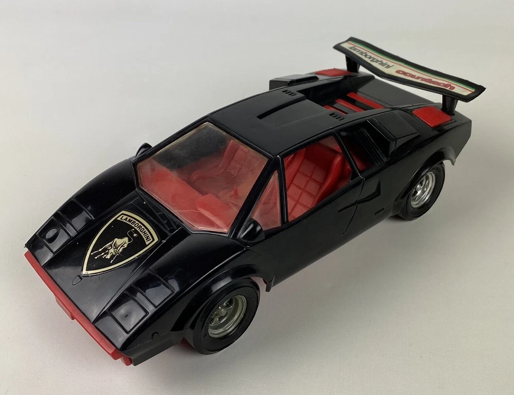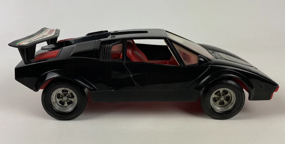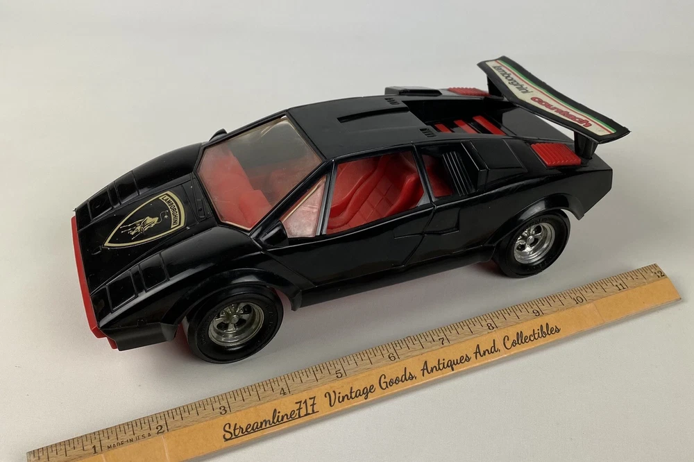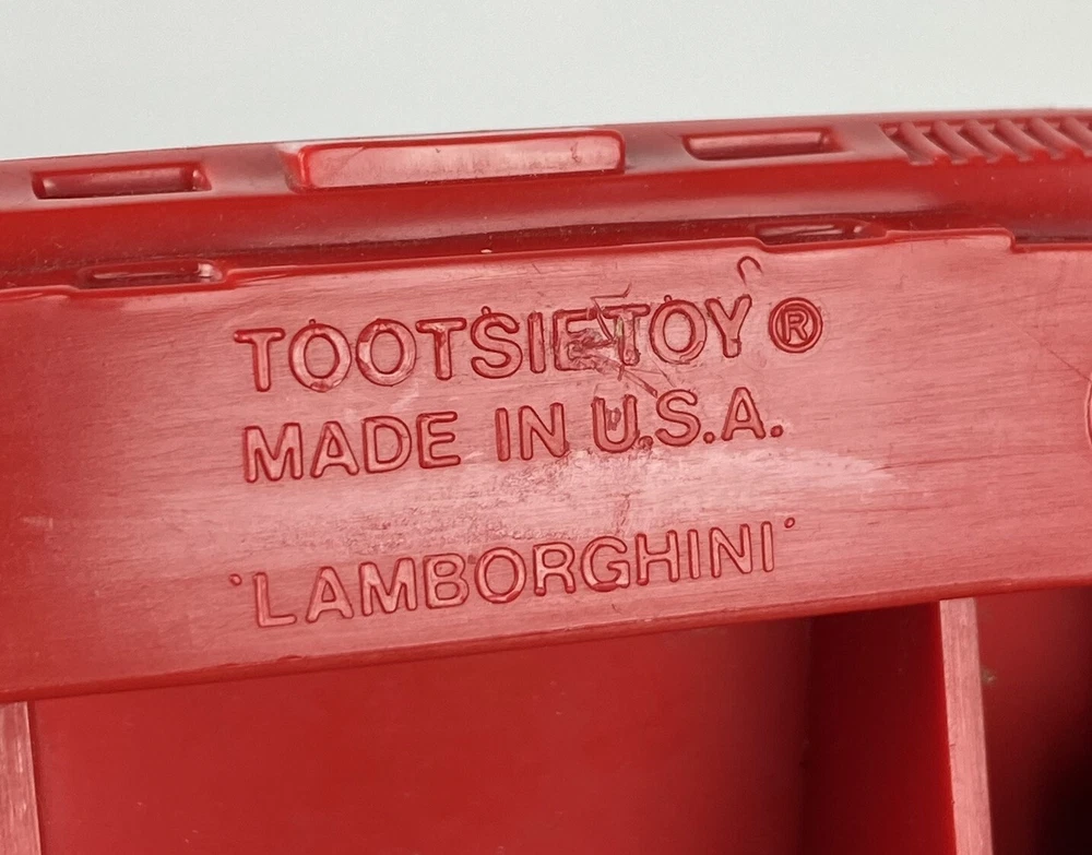 This vintage Tootsie car is a rare collectible for any Lamborghini enthusiast. The black plastic body and red interior make for a striking addition to any super car collection. Measures 10-1/2” overall and manufactured in the 1980s, this Tootsie toy is a perfect addition to any toy vehicle collection. The Lamborghini Countach Tootsie Toy is a must-have for any fan of vintage toys. Made in the United States, this toy is a piece of history that any collector would be proud to add to their collection. Most of our items are second hand and have some shelf wear on them. We do not guarantee mint condition unless otherwise noted. Please take time to look closely at all photos of items and specifics, as they are all part of the complete description. Most noticeable flaws we see will be pointed out with a pen. All items in the photos are of the actual product being shipped directly to you (minus display props and measuring devices) If an item is not in the photos, please do not expect it. If you have any questions or concerns, please reach out to us. Our feedback speaks for itself. We do all we can to keep you satisfied with your buying experience from Streamline717