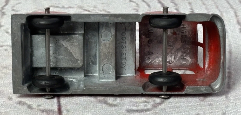 This vintage TootsieToy Diecast Red Metal Chicago Fire Truck is a must-have for any toy collector or fire department enthusiast. Made in the United States, this truck is a fine addition to any collection with its bright red color and intricate details. The diecast material ensures that it will last for years to come, making it a great investment for collectors. The truck's brand name, TootsieToy, is synonymous with high-quality toy vehicles. Its model is a classic fire truck, perfect for children and adults alike. This item falls under the Toys & Hobbies, Diecast & Toy Vehicles, and Cars, Trucks & Vans categories. Don't miss out on the chance to add this vintage gem to your collection!