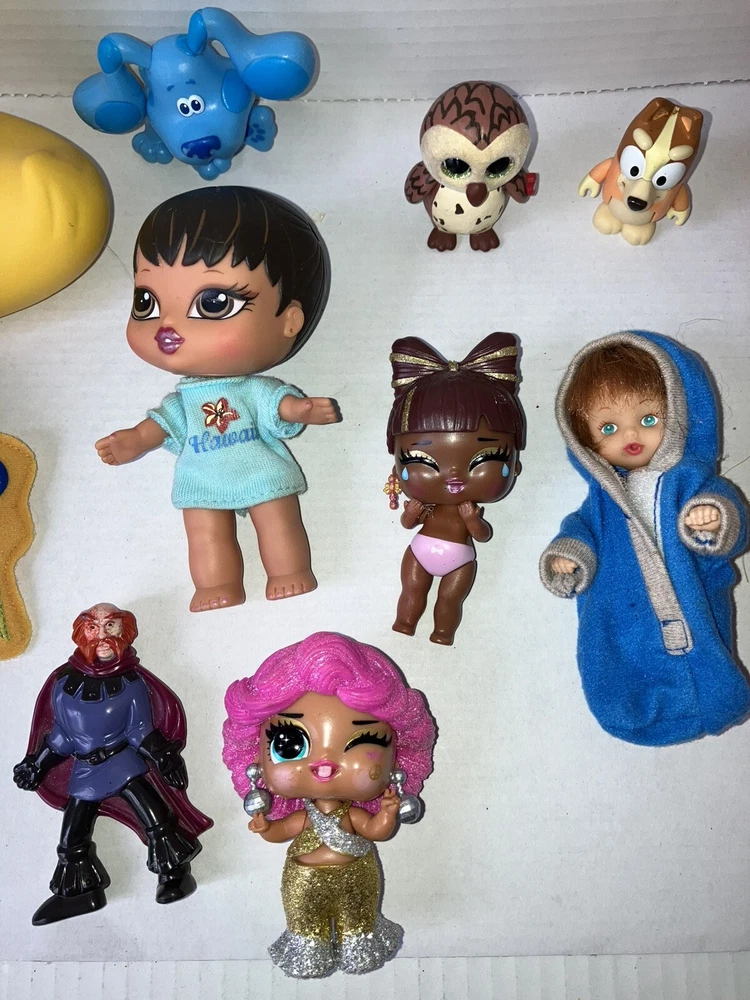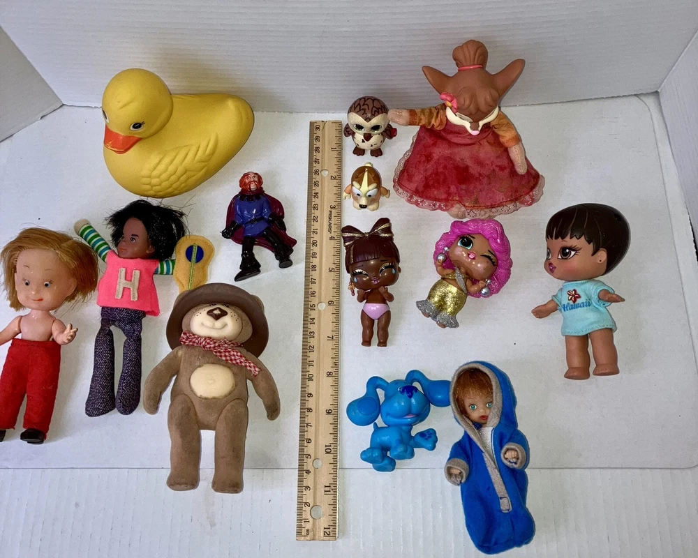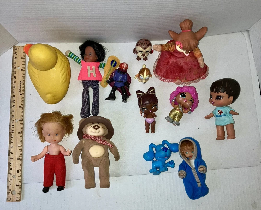 This auction is for a mixed lot of toys .All have some wear and need TLC. Please see pictures… the duck is largest at 5”x5” the duck is also by knickerbocker, the girl mouse is from Fievel goes west Tanya Mousekewitz …there is a Ty owl it’s hard not stuffed and other toys , Mattel 1975 Honey Hill Bunch Clubhouse Solo doll with its guitar ,Furskins 5” flocked bear Dudley and more …please see pictures.At this time I don’t ship internationally and I don’t combine shipping