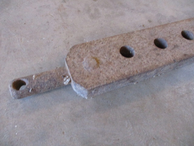 Vintage Tools: Antique Tractor Cross Drawbar - 31 Inch Long - 11 Holes - 7/8 Inch End Pins This is a very old cross drawbar to use behind a tractor to attach equipment for pulling. I have had this for many years as equipment with old farm tractors. I used it a bit, not that much, and it has been in storage since the 1980's. It is a heavy metal item, and 31 inches long. The rectangular main bar is 26 inch long, 2.5 inch wide, and 1 inch thick. There is a 7/8 inch diameter round end pin, 2.5 inch long at each end, so it’s 31 inch long overall. There are 11 holes each 3/4 inch in diameter and 2 inch apart on center. There is 1.25 inch clearance between the holes, and 2.5 inch clearance at each end of the 26 inch rectangular main bar. There is a 3/8 inch hole at the end of each end pin for cotter pins. It is in good used condition. This is an excellent value on an old but still fully useable tool. Please see the photo. I’ve provided the information that I like to see when I am buying things for myself, so I hope it’s complete. If not, please email any questions. If you prefer to pick this item up, any of my listings are also available in Bean Station, Tennessee (less than 1 hour NE of Knoxville and 1 hour from the Smoky Mountains). Thanks very much for looking.