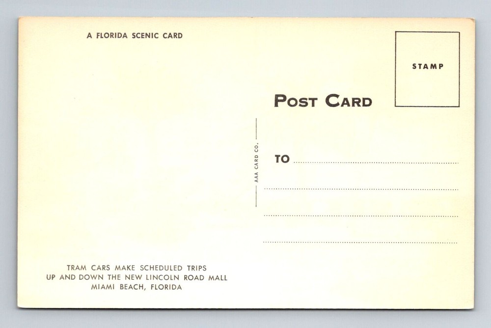 Vintage Tram Cars at Miami’s Lincoln Road Mall Florida Postcard