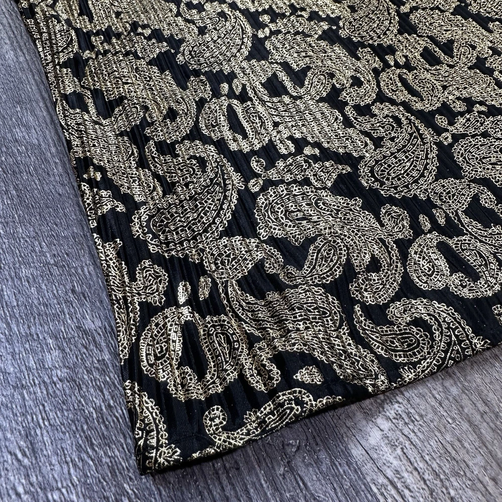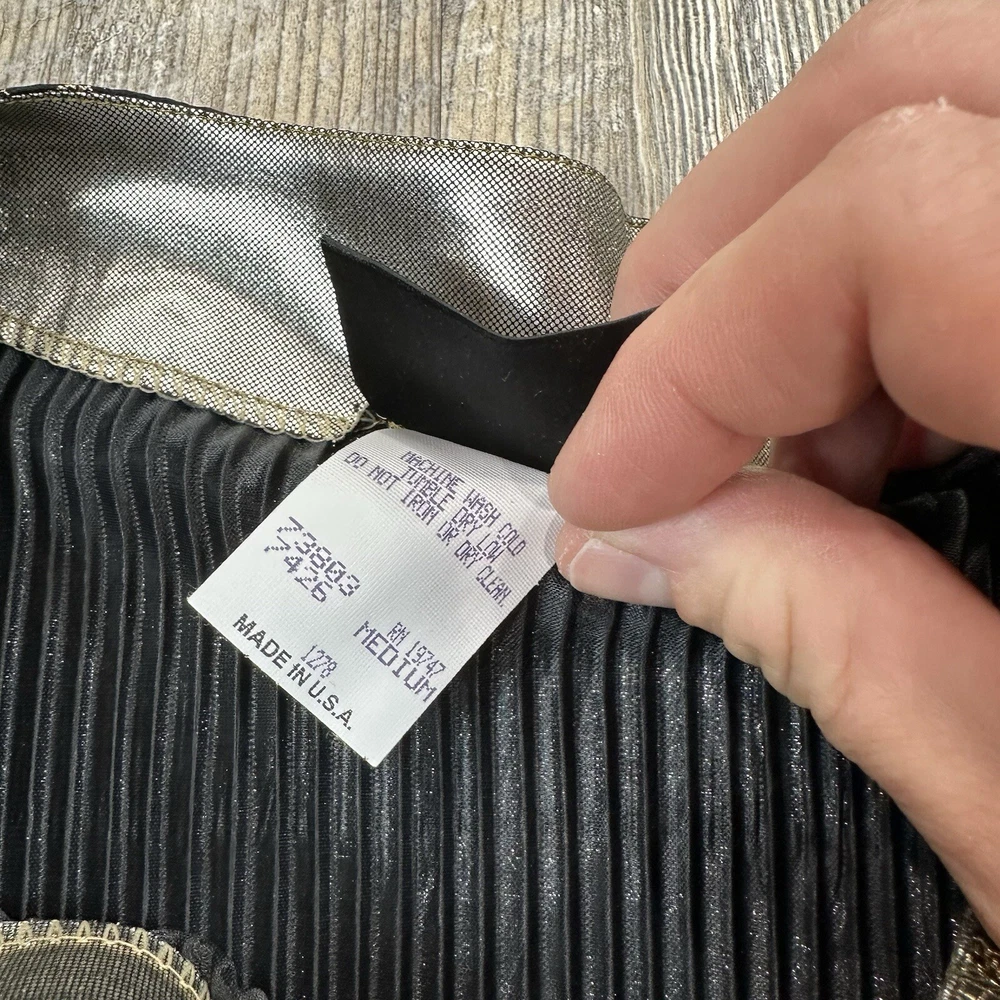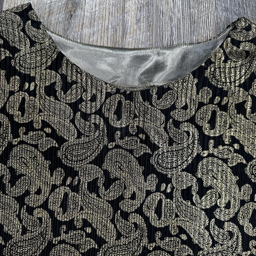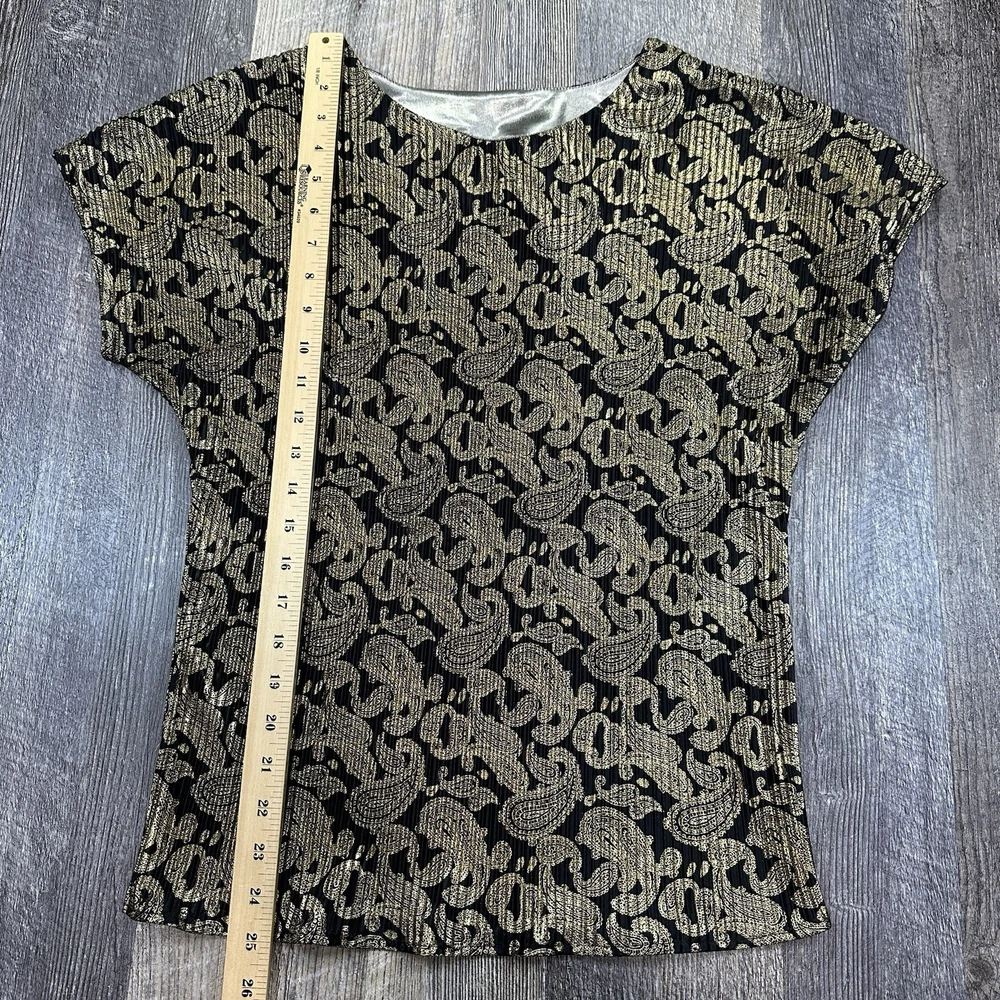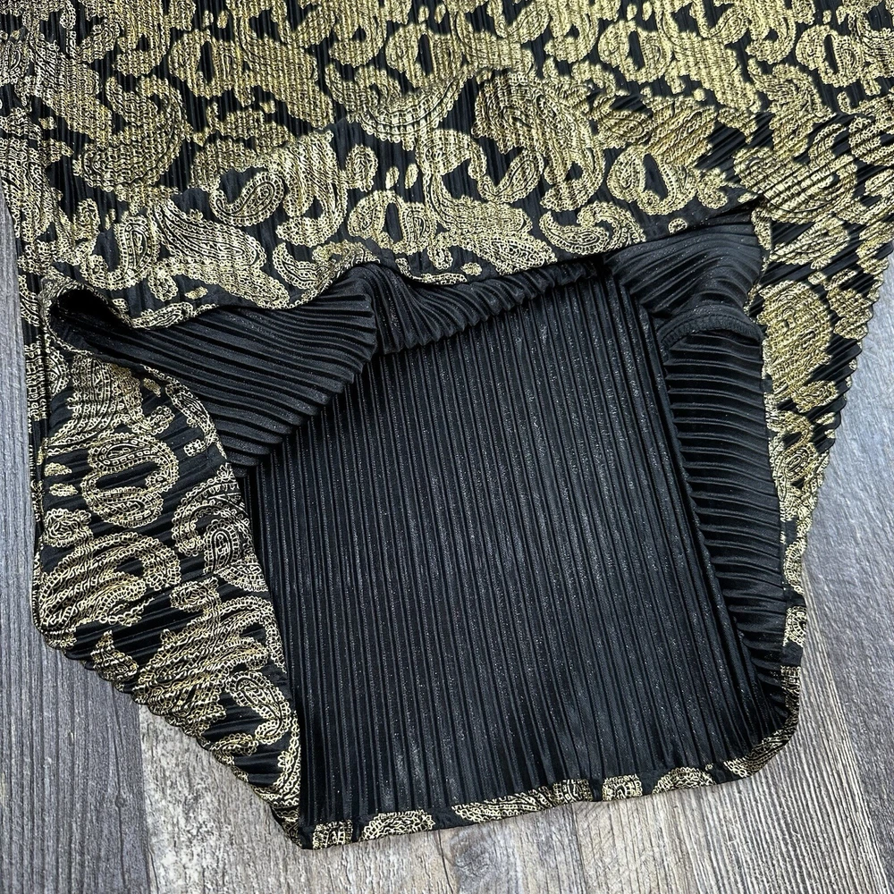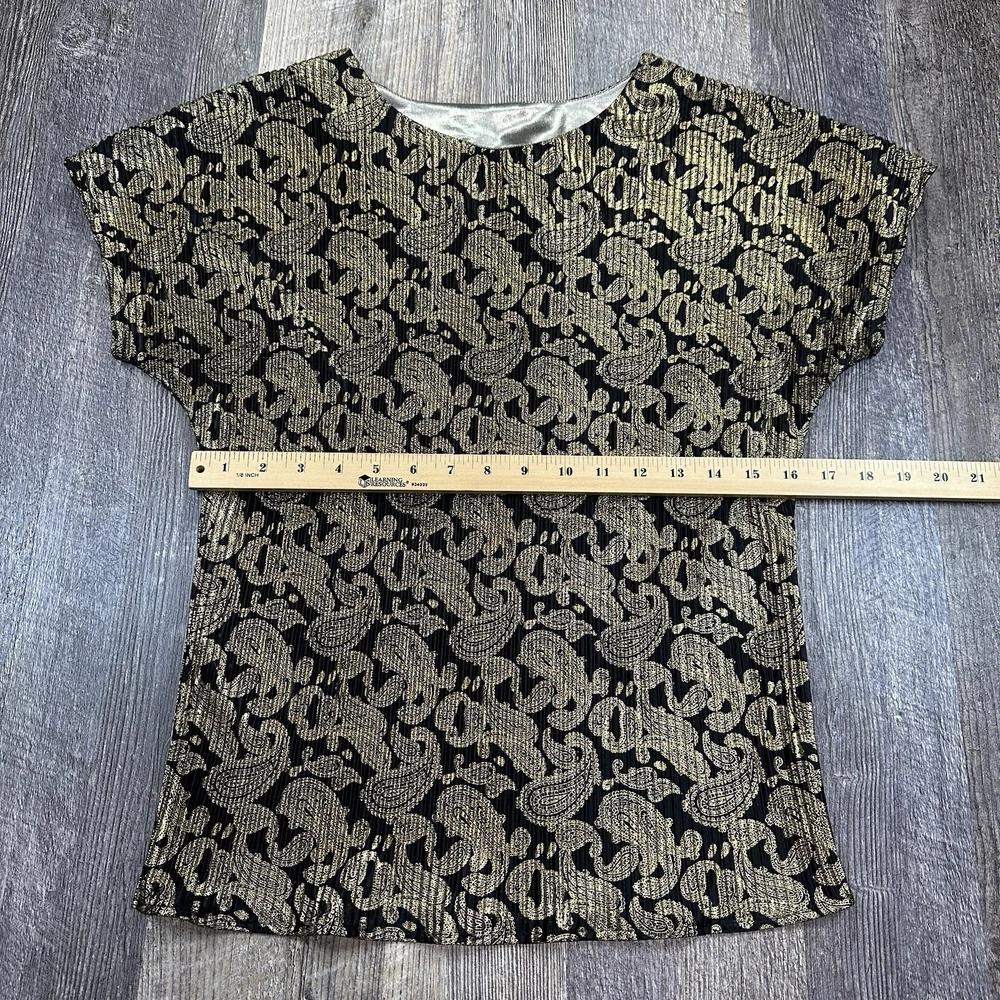 Vintage Women’s Trimmings Pleated Brocade Metallic Gold Blouse - Made in USA Women's Size - M Excellent Pre-Owned Condition NOTE: Please see all photos for condition as all flaws will be shown throughout the photos! * COLORS MAY BE DARKER OR LIGHTER OR SLIGHTLY DIFFERENT DUE TO MONITOR/PHONE/TABLET SETTINGS. Please refer to the "condition description" for inspection notes. Actual measurements may differ from the tag due to potential shrinkage, stretching, hemming, or manufacturer error. It is common for pre-owned jeans to shrink or stretch based on how they were washed/dried/worn from previous owners. If measurement differs more than 1.5" either way from what the tag says, I will list the items as actual measurements to ensure proper fit. I recommend measuring yourself before ordering online to help find the perfect fit for you. My shipping discount: $3 shipping on each additional item you add to your order!