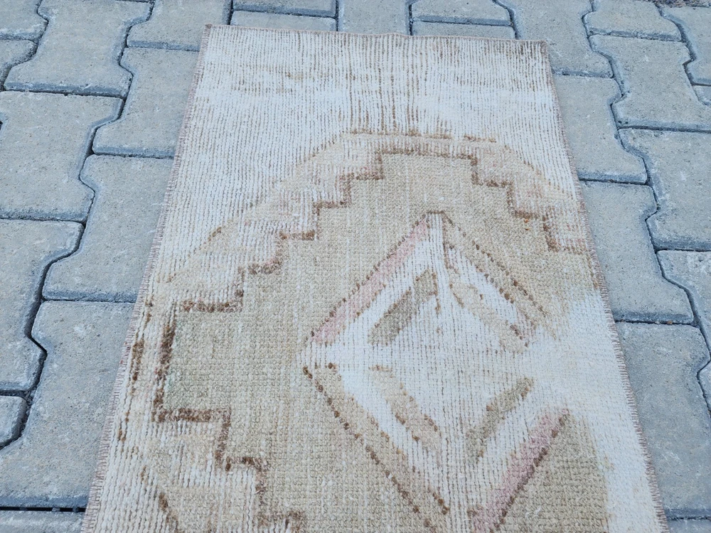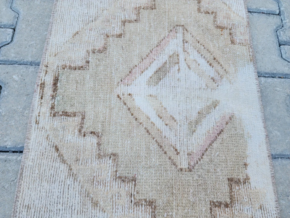 Mini Turkish Wool Rug 1.5x3 ft Blush Beige Geometric Handwoven Oushak