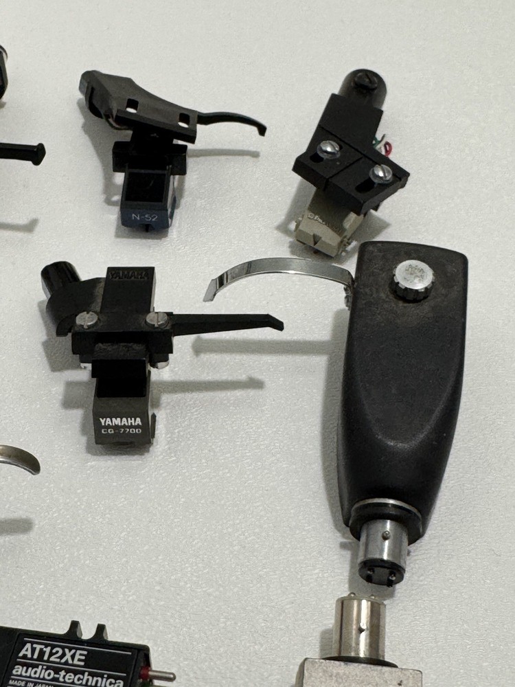 Turntable Cartridges Parts Lot Technics Shure Pioneer Stanton Bang Olufsen MMC 4 That parts are in used condition, and are untested. Everything is being sold as-is. Bang Olufsen MMC4 Pioneer shellhead Pioneer 5MC Yamaha shellhead W/ CG-7700 (broken stylus) Empire 2002 ADC Integra Pickering P/ AT-1 Stanton cartridge W/ EE 600 (broken stylus) Ortofon Digitrac 100 / 7 Audio-Technica At12XE Shure Pro Track 6 Realistic R25 EDT Azden YM 10E Shure M75ECS Stanton D70E Empire 380