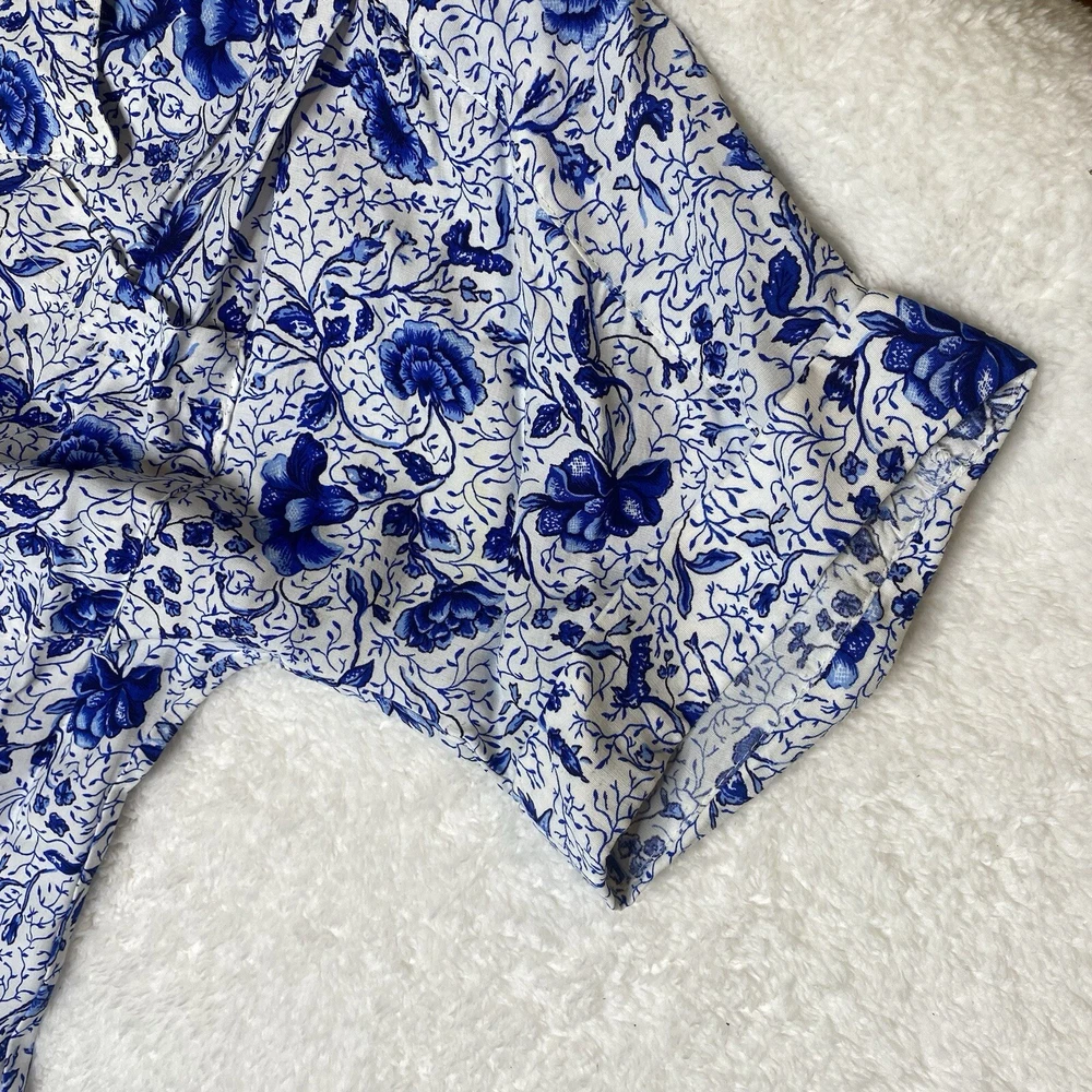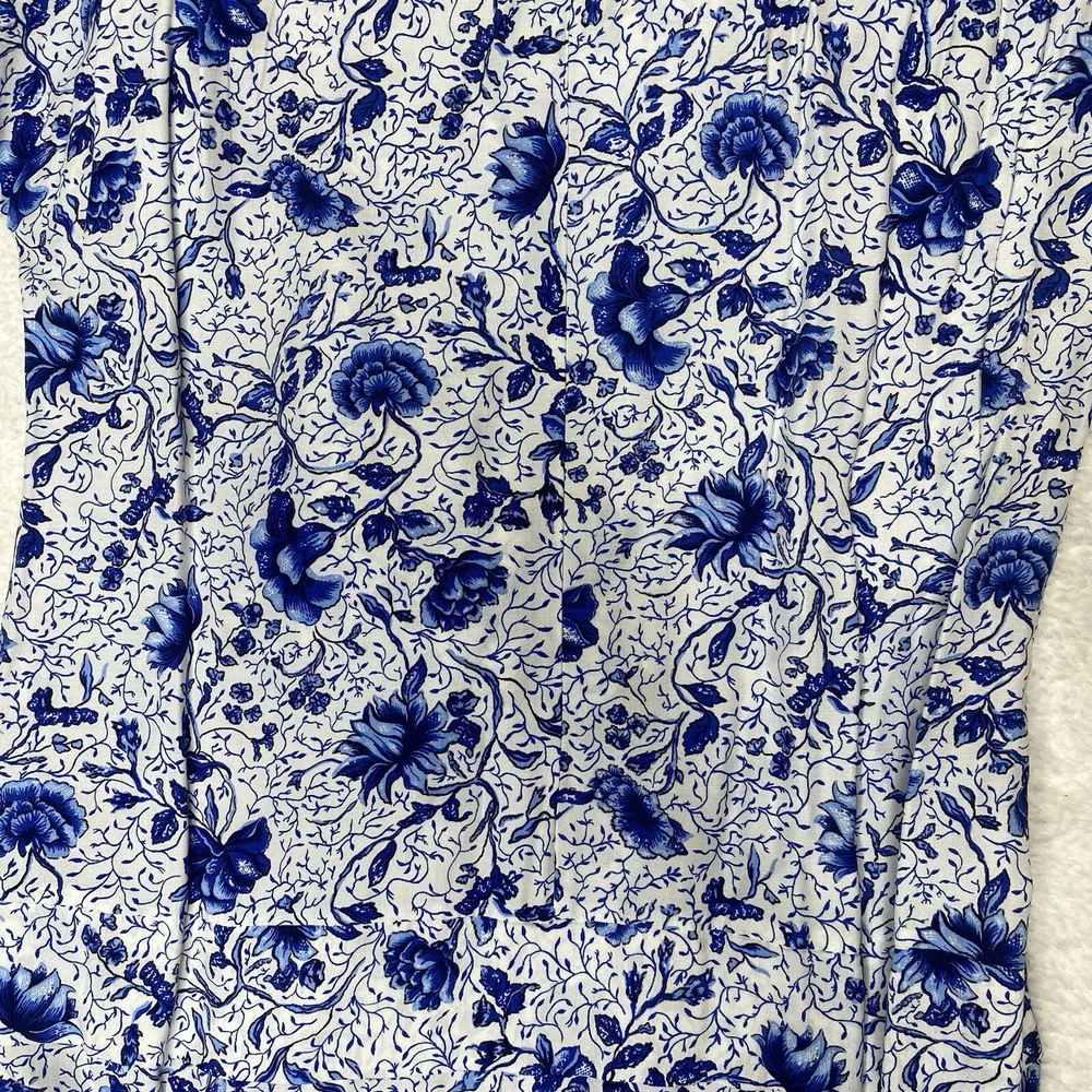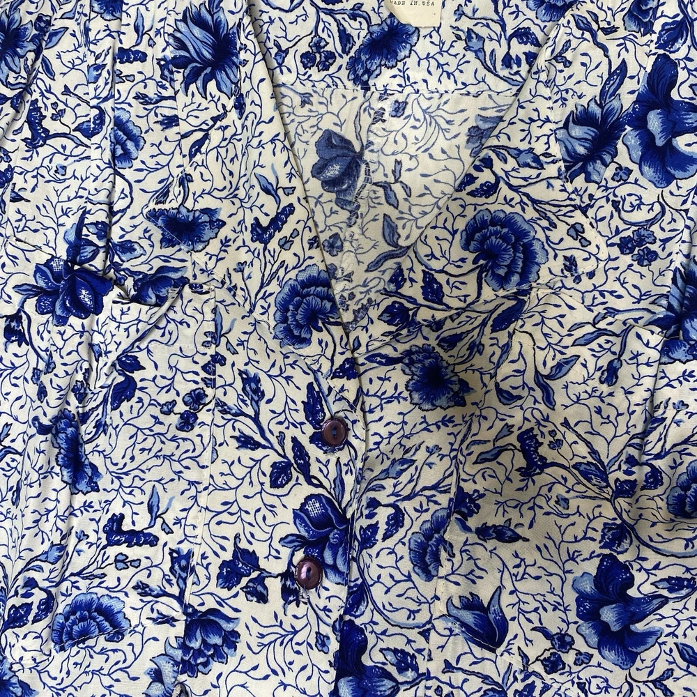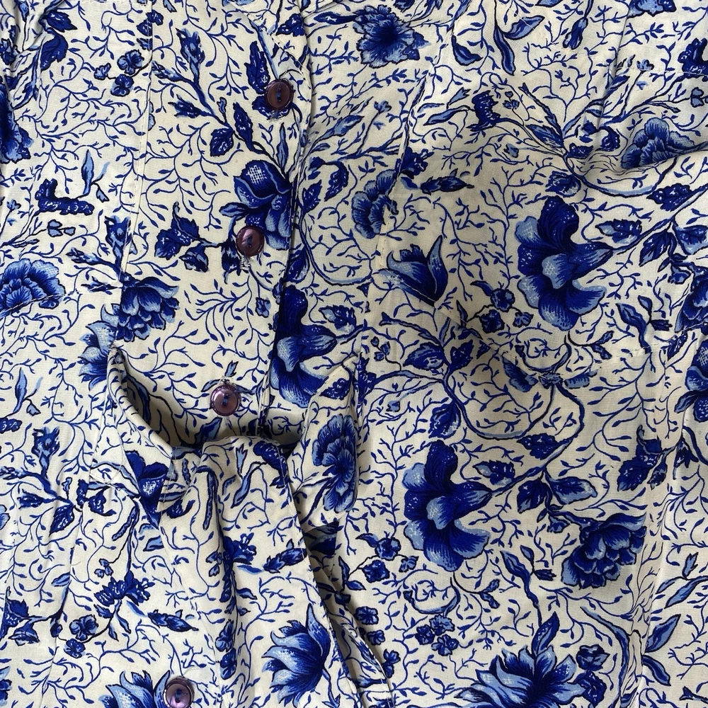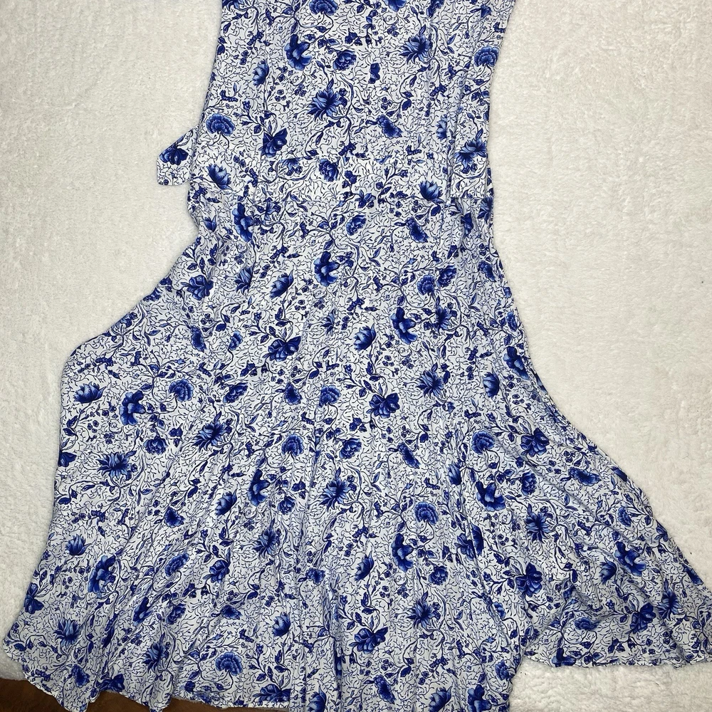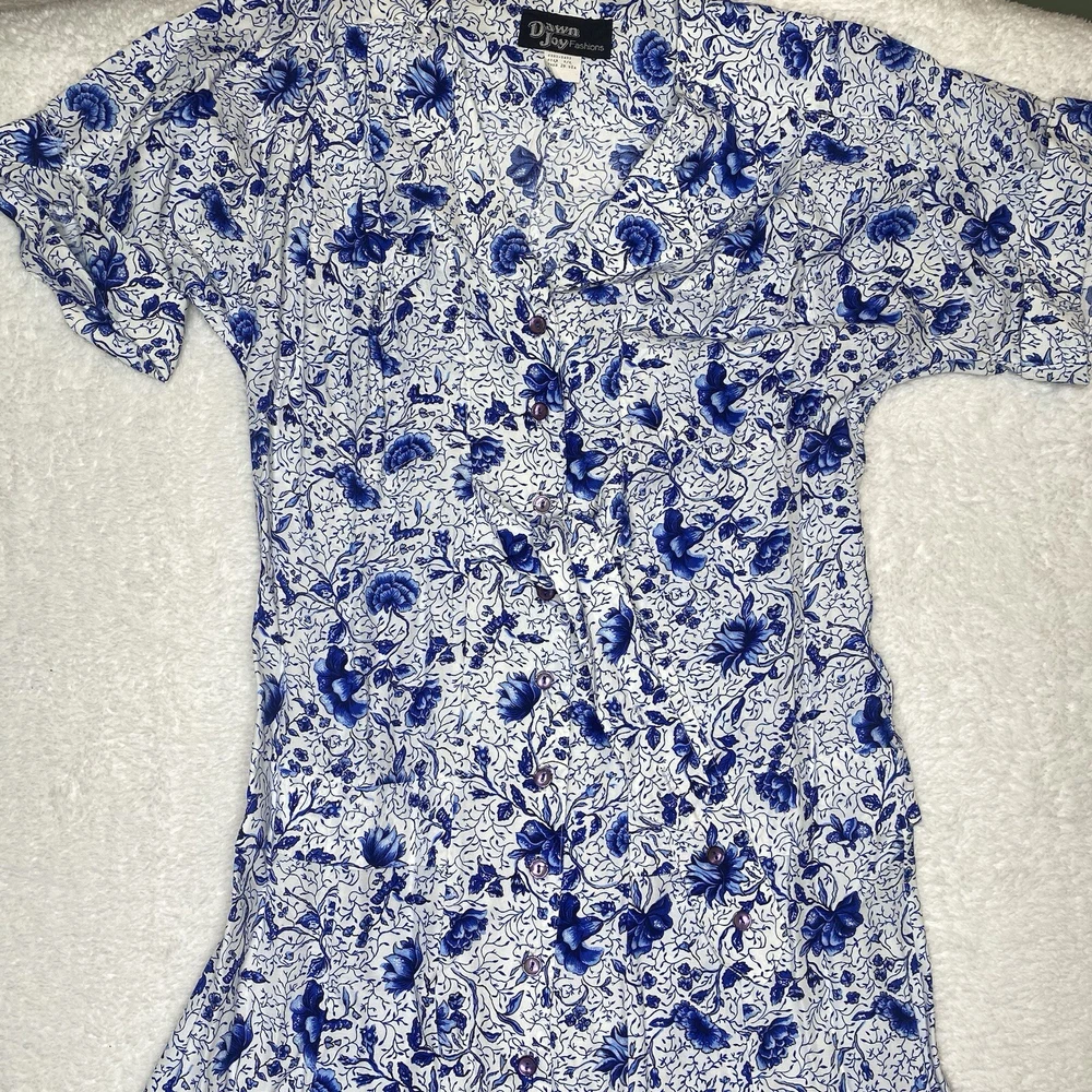Vintage USA Dawn Joy 1970s 1980s White blue Maxi Dress V-Neck with collar button down front 7/8 excellent condition, tie front cinch, prairie, cottage core, whimsical, preppy ๐ specific measurement shown in photos ๐