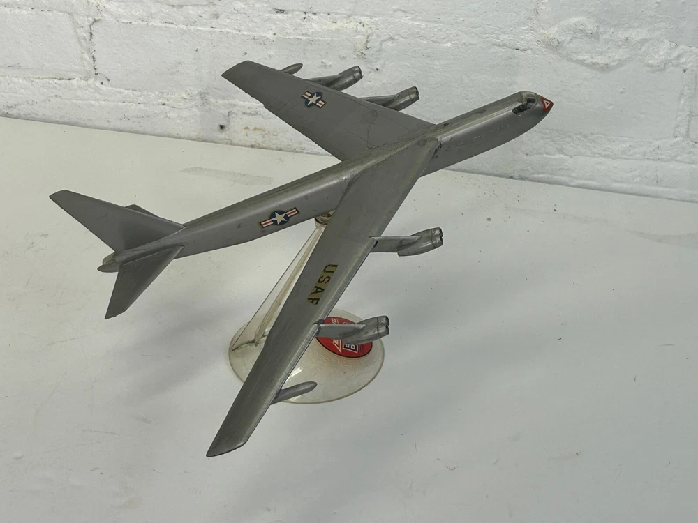 Vintage USAF Boeing Stratofortress Bomber Plastic Model Aircraft Display. It measures 10.5 inches long with a 12.5 inch wingspan. Made of plastic, has some decal/paint loss and crudely made, but still displays good. (TR1)