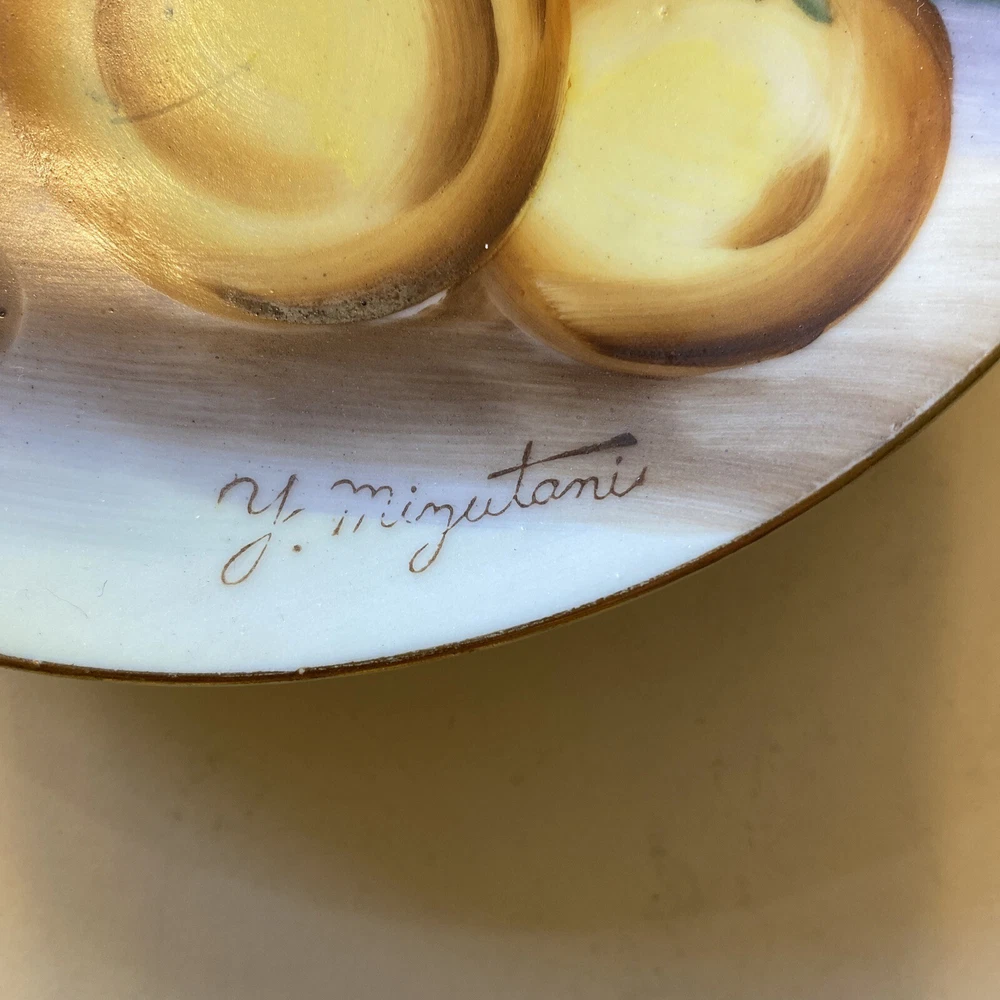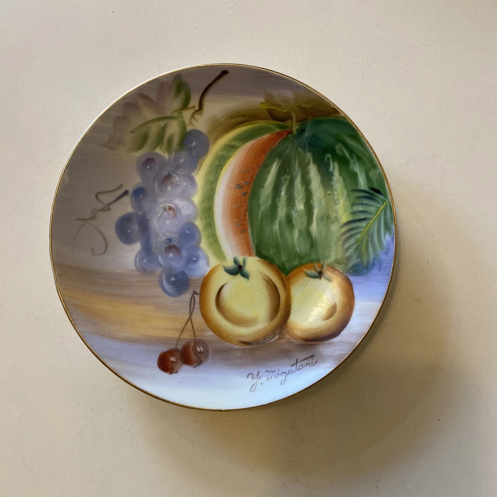 Japanese artist Y Mizutani 6” ceramic hand painted fruit small plate from post war Japan. In great condition. No cracks or chips.
