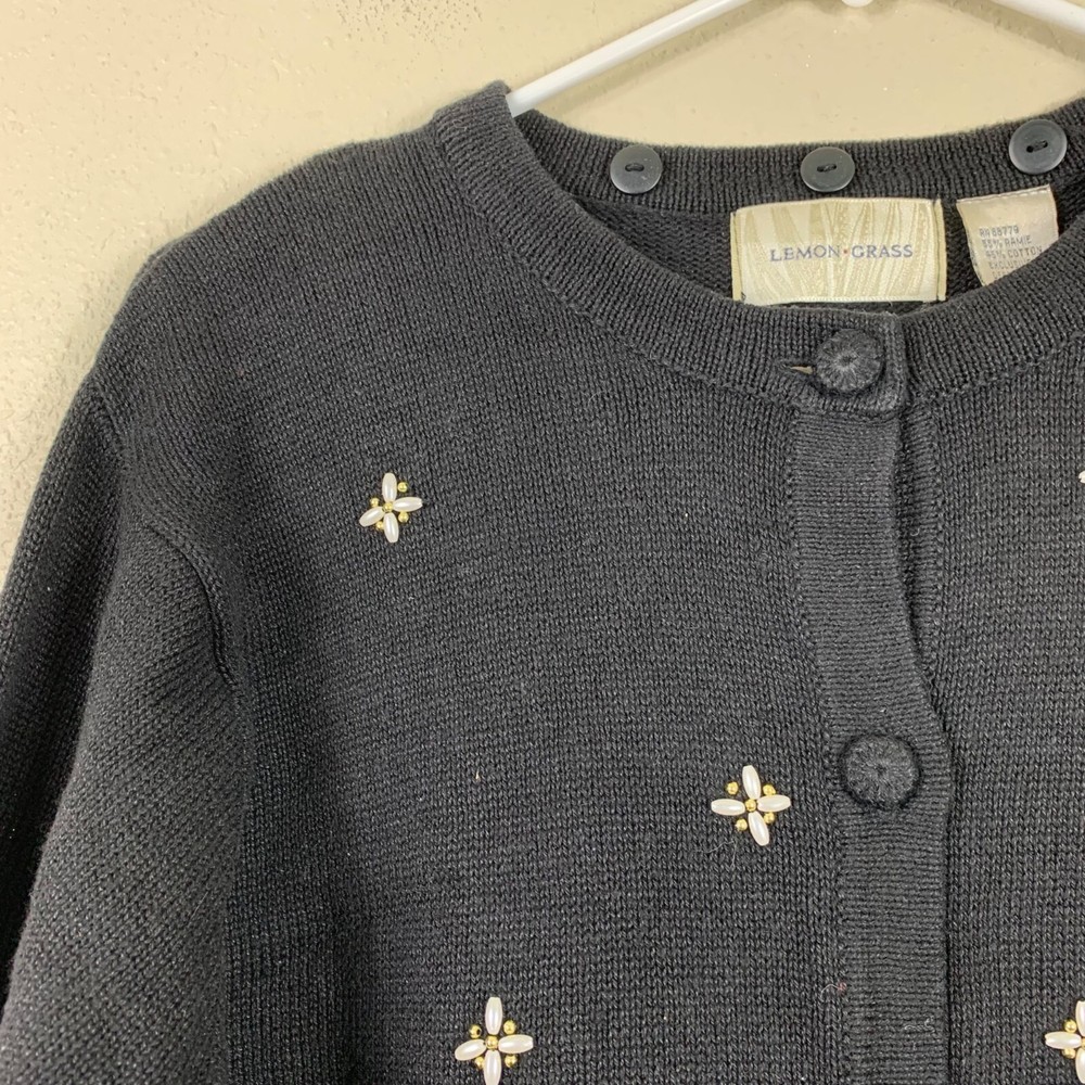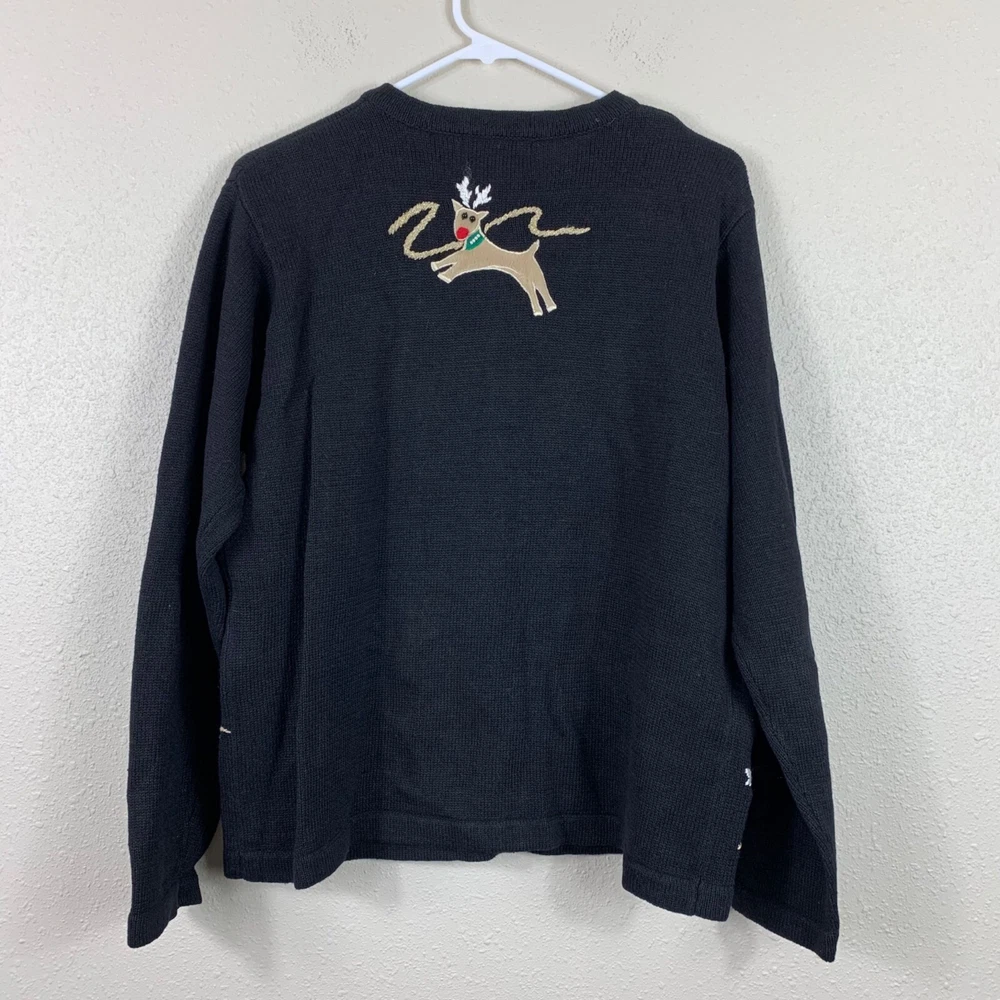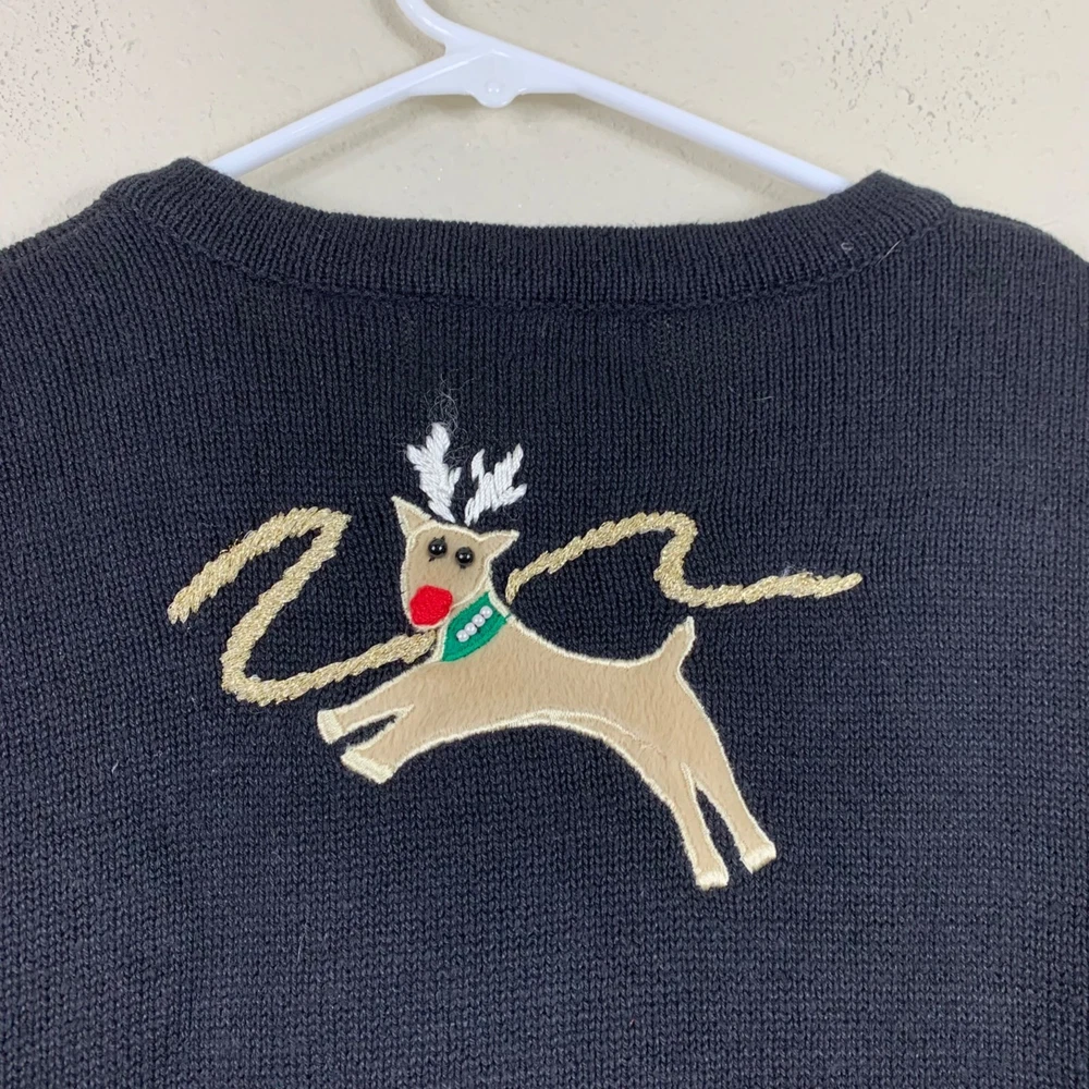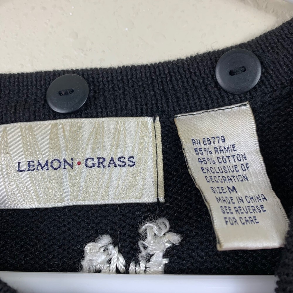 Vintage Lemon Grass Ugly Christmas Sweater Reindeer Knit Cardigan - Size Medium The faux pearl choker on one of the reindeer is missing. There are buttons on the collar for a hood, but the hood is not included. Besides that it’s in great preowned condition! Button closure Round neck Faux pearl and gold bead detailing Appliqué reindeer with embroidered antlers Ramie Shoulder: 18" P2P: 22" Sleeve: 23" Length: 24" Measurements are lying flat, and estimates only. 1P25 1 lb 4 oz
