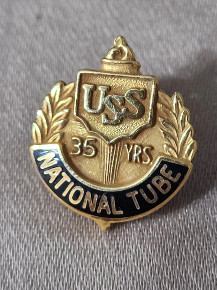 This vintage United States 10K gold pin is a beautiful piece of history from the National Tube Co. It features a 35-year anniversary design and weighs 2.5 grams. The pin has a 1/2" back and is perfect for any collector or fan of awards. It was made in the United States and is not a handmade item. Add this unique piece to your collection today!