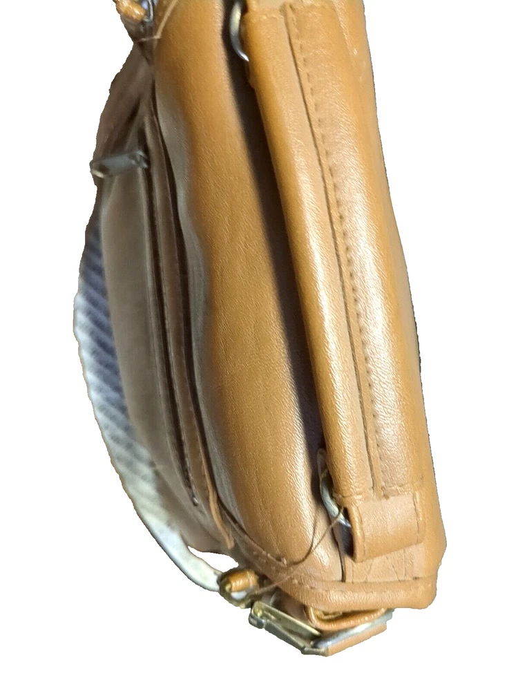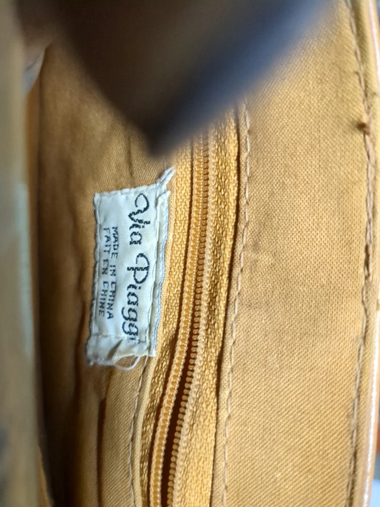 This Via Piaggi crossbody purse is a vintage piece crafted from genuine leather in a beautiful tan color. It features a rectangular shape with a clasp closure and a medium size that measures 10 inches in width, 10 inches in height, and 3 inches in depth. The bag has a 22-inch strap drop and a 2-inch handle drop, making it a perfect fit for women who prefer a comfortable and stylish crossbody. The bag has both inner and outer pockets, providing ample space to store your essentials. The hardware is gold in color, complementing the overall design of the bag. This Via Piaggi crossbody purse is a must-have for women who want to add a touch of vintage style to their wardrobe.