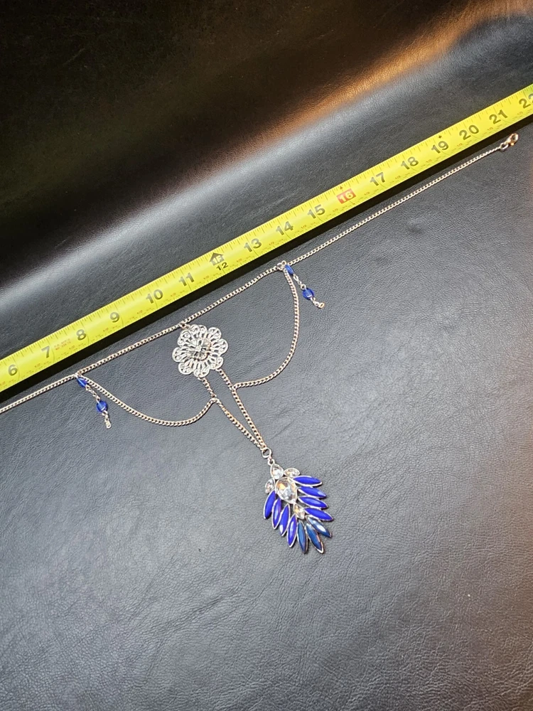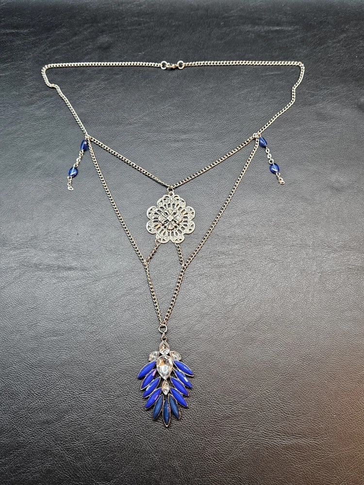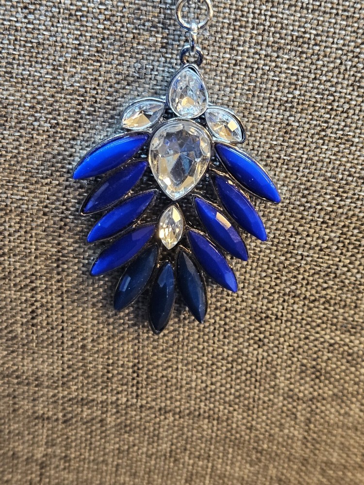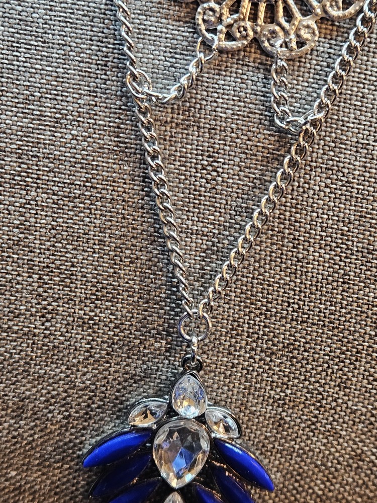 Buy and get free jewelry!! Selling a beautiful ONE of a kind Vintage Silver Tone Victorian Style Royal Blue Rhinestone Necklace. This necklace is 20 3/4" inches long, This is a handmade and Hancrafted necklace and is the only one that exists, Please see pictures for condition and size, free fast shipping!!