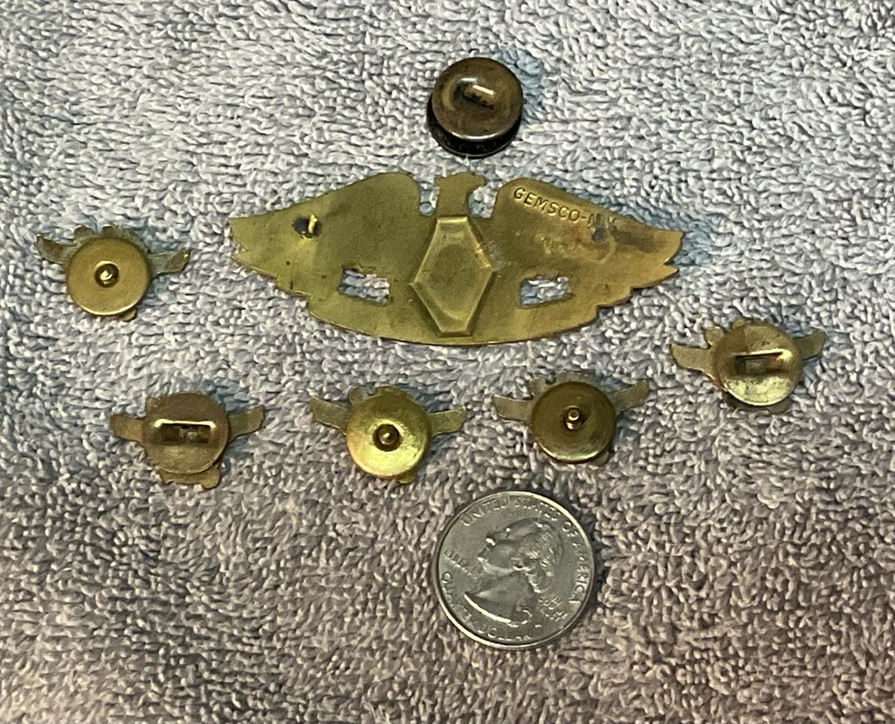 This product is a lot of vintage WWII US Navy Naval Reserve/Merchant Marine insignia lot. They are original period items from the United States, specifically related to militaria during World War II. These pins are a piece of history from the era and are a unique collectible item for enthusiasts interested in military memorabilia from that time. These insignia serve as a symbol of honor and pride for those who served in the US Navy during the conflict. Lot and condition as shown in photos.