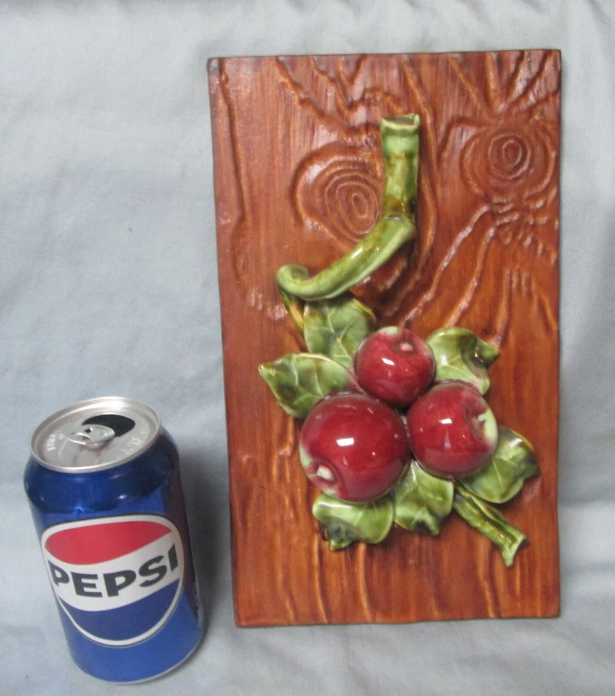 This is a Wade of California art pottery wall plaque with apples in excellent condition. No chips, cracks, or crazing. It is approx. 10 1/2in. by 6 1/4in. Nice item to add to your collection, decor or existing set. Thanks for looking.