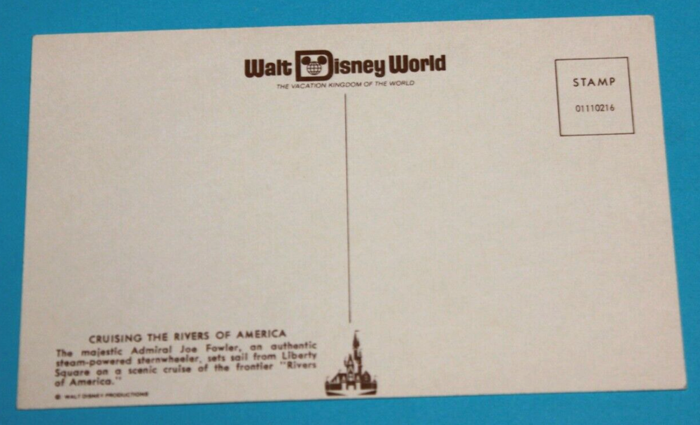 Vintage Souvenir Travel Postcard Walt Disney World Cruising The Rivers . Any photos used are of the item that you will be receiving, they are not stock photos. Will combine shipping costs for multiple purchases. Shipments to the Continental U.S. only. Sorry, No APO or FPO. Please pay promptly. Please visit our Ebay store for more great items. Combined shipping is not automatic. If you're not sure how to do it, Please contact us and we'll be happy to help.