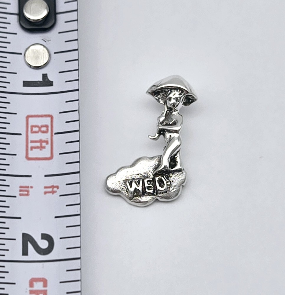Vintage Wednesday Sterling Silver Day Umbrella Charm Pendant - 2.2g