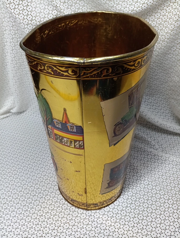 Item Height: 13" Seller Notes: “See Description” Room: Bathroom, Bedroom, Home Office/Study, Utility/Laundry Room Number of Compartments: 1 Item Width: 7" Type: Wastebasket Capacity: 3 gal Country/Region of Manufacture: United States UPC: Does not apply Personalize: No Shape: Oval Style: Old Jalopy / Antique Car Brand: Weibro gtin13: Does not apply Size: Medium Color: Multicolor Item Length: 10 1/2" Material: Metal