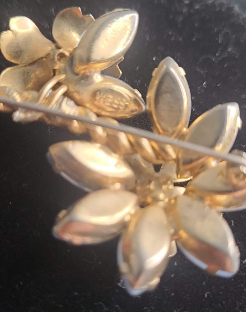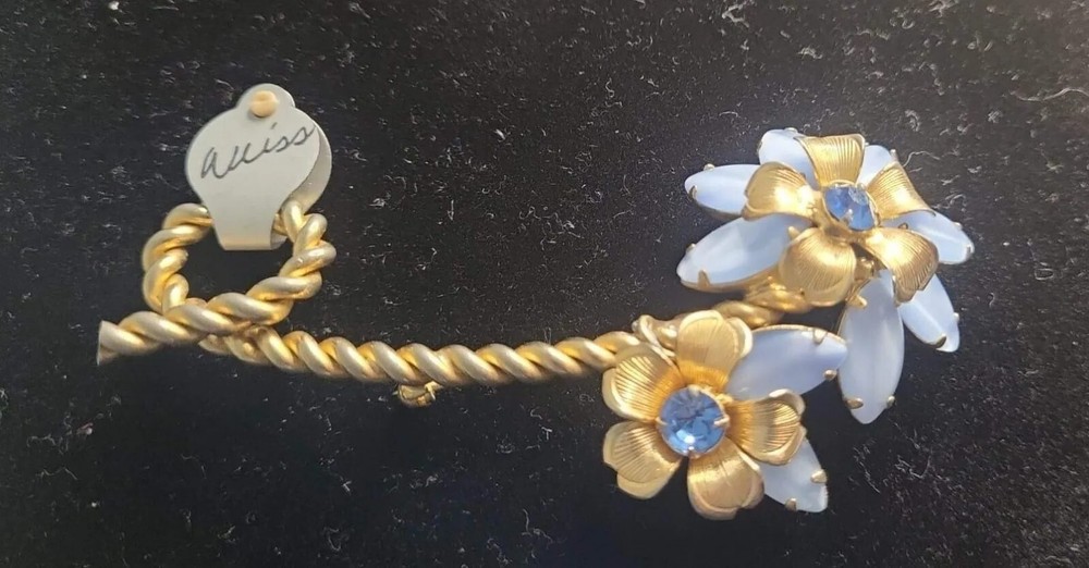 Vintage Weiss Gold Tone Blue Flowers Brooch for Elegant Style