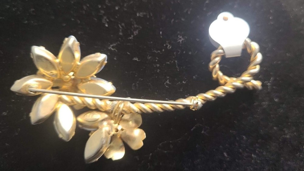 Vintage Gold Tone Emmons Pin with Metal Branches and Faux Pearls Signed