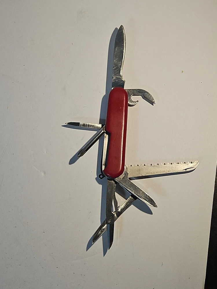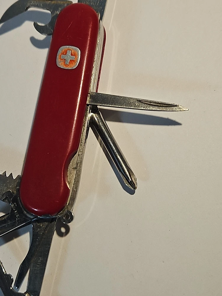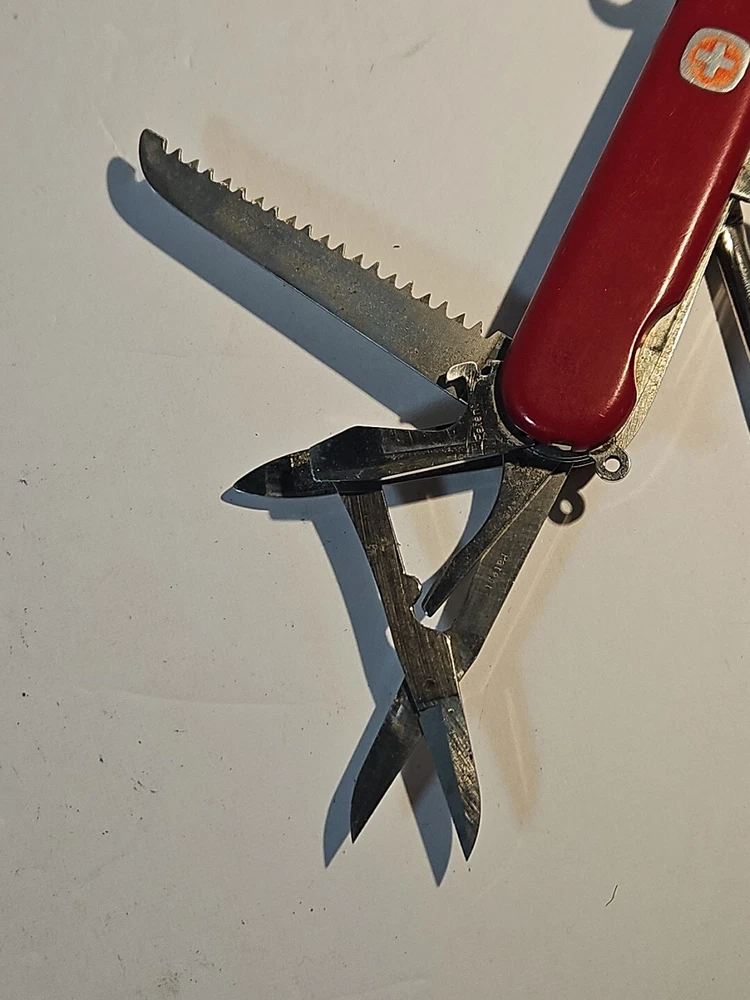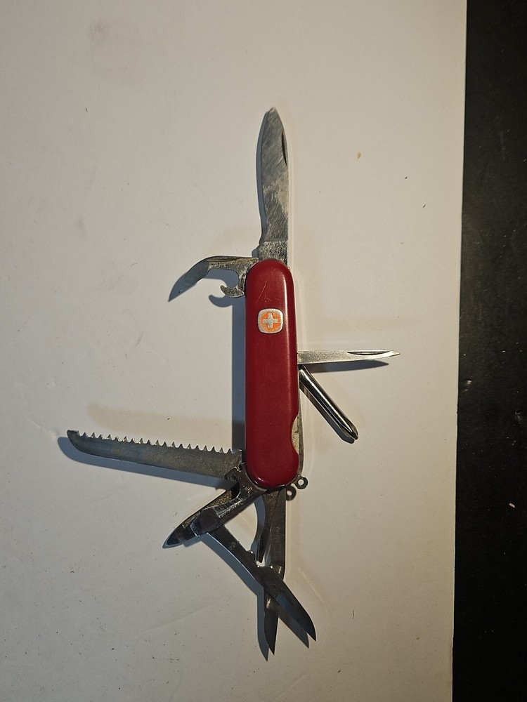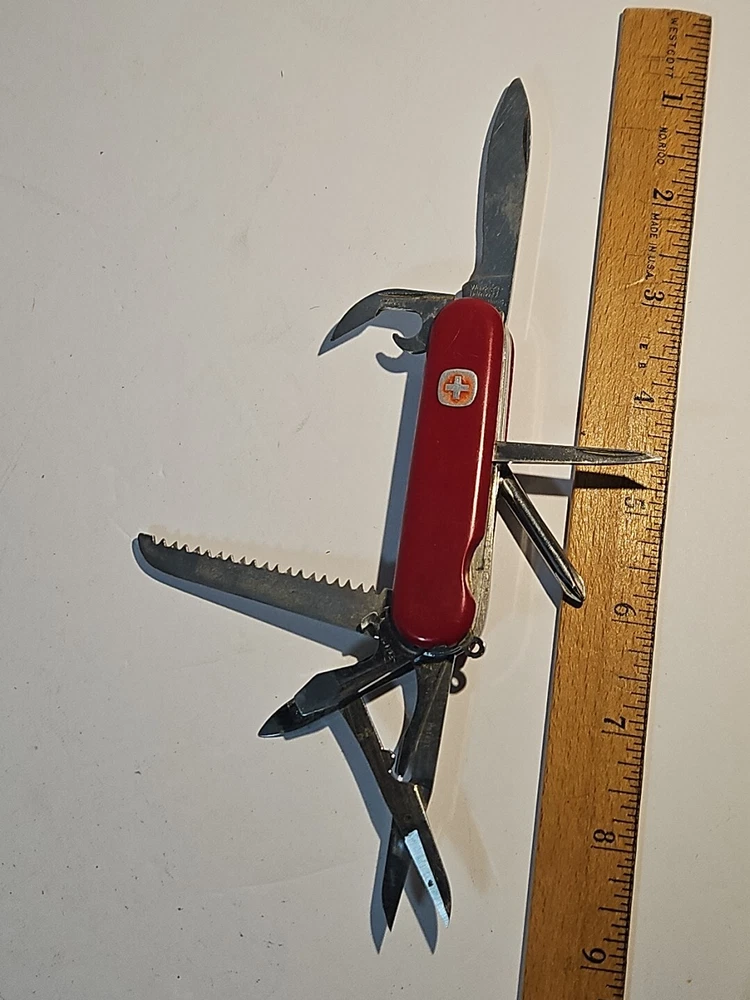 Wenger Backpacker II Swiss Army Multi Tool Retired Vintage Combo-serrated Fair This unit has imperfections. Wear on blades, markings and chips on red cover. See pictures. Tweezers included, but no toothpick. See pictures. Product will be shipped timely and packaged with care. Offers are encouraged. Please feel free to reach out with questions. Please see pictures. Thank you. Good used condition. Light wear from age and use. Markings from age and use. See pictures This Wenger Backpacker II Swiss Army Multi Tool is a must-have for any outdoor enthusiast. With a variety of tools including a punch, corkscrew, saw, and bottle opener, this multi-tool is perfect for any situation. The blade is made of stainless steel with a serrated edge and drop and clip point blade type. The handle is made of durable plastic and the tool is designed for ambidextrous dexterity. This original and authentic Wenger multi-tool is perfect for collectors and adventurers alike. The tool is designed for ease of use and safety, with a slipjoint lock type. The Backpacker II model was made in Switzerland and has a red color handle. Don't miss out on this amazing collectible and functional item. HLB2