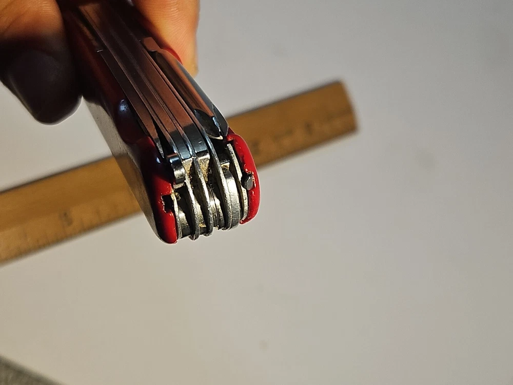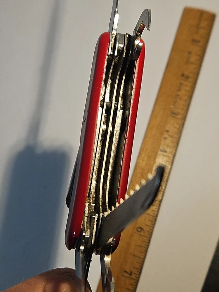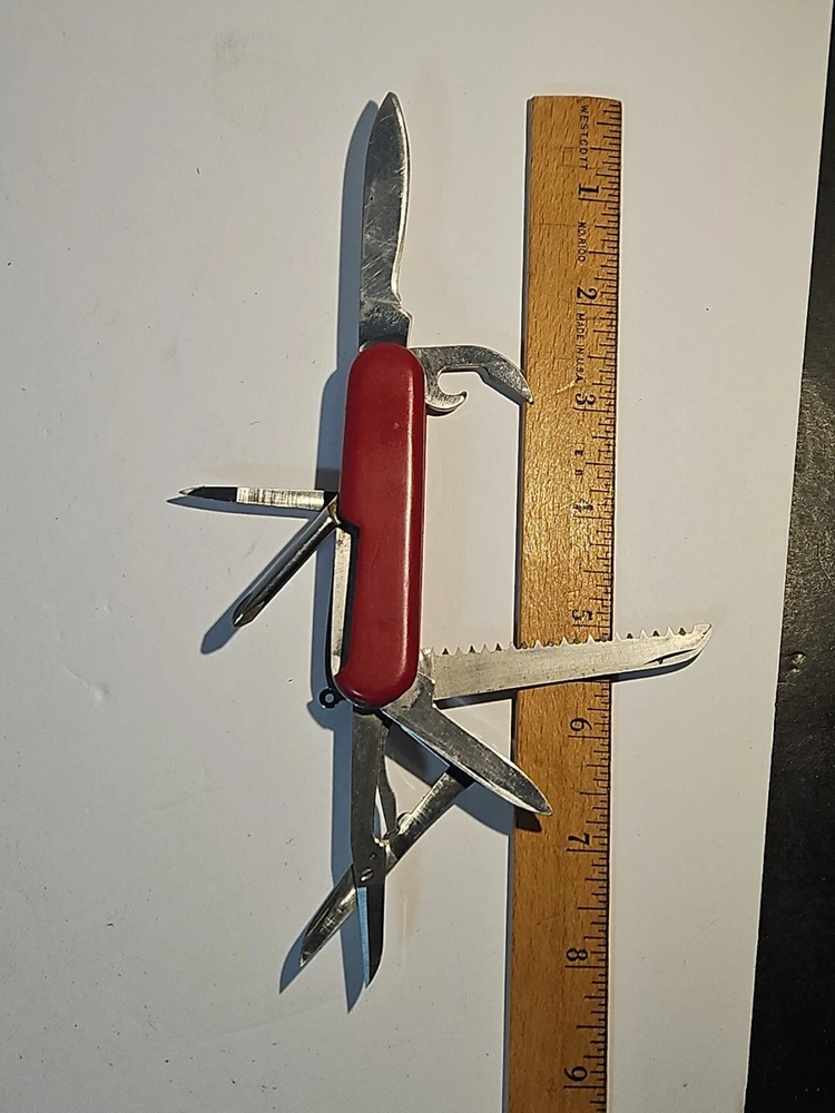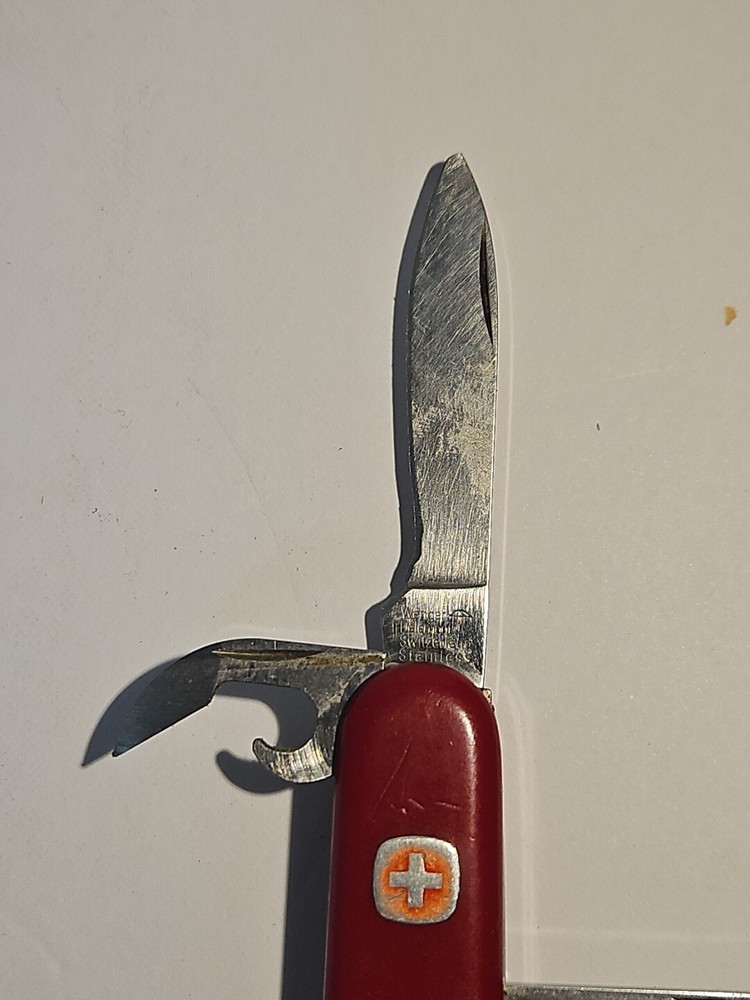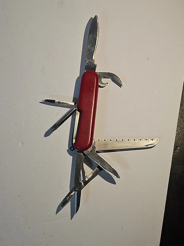 Wenger Backpacker II Swiss Army Multi Tool Retired Vintage Combo-serrated Fair This unit has imperfections. Wear on blades, markings and chips on red cover. See pictures. Tweezers included, but no toothpick. See pictures. Product will be shipped timely and packaged with care. Offers are encouraged. Please feel free to reach out with questions. Please see pictures. Thank you. Good used condition. Light wear from age and use. Markings from age and use. See pictures This Wenger Backpacker II Swiss Army Multi Tool is a must-have for any outdoor enthusiast. With a variety of tools including a punch, corkscrew, saw, and bottle opener, this multi-tool is perfect for any situation. The blade is made of stainless steel with a serrated edge and drop and clip point blade type. The handle is made of durable plastic and the tool is designed for ambidextrous dexterity. This original and authentic Wenger multi-tool is perfect for collectors and adventurers alike. The tool is designed for ease of use and safety, with a slipjoint lock type. The Backpacker II model was made in Switzerland and has a red color handle. Don't miss out on this amazing collectible and functional item. HLB2