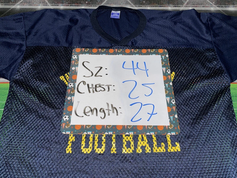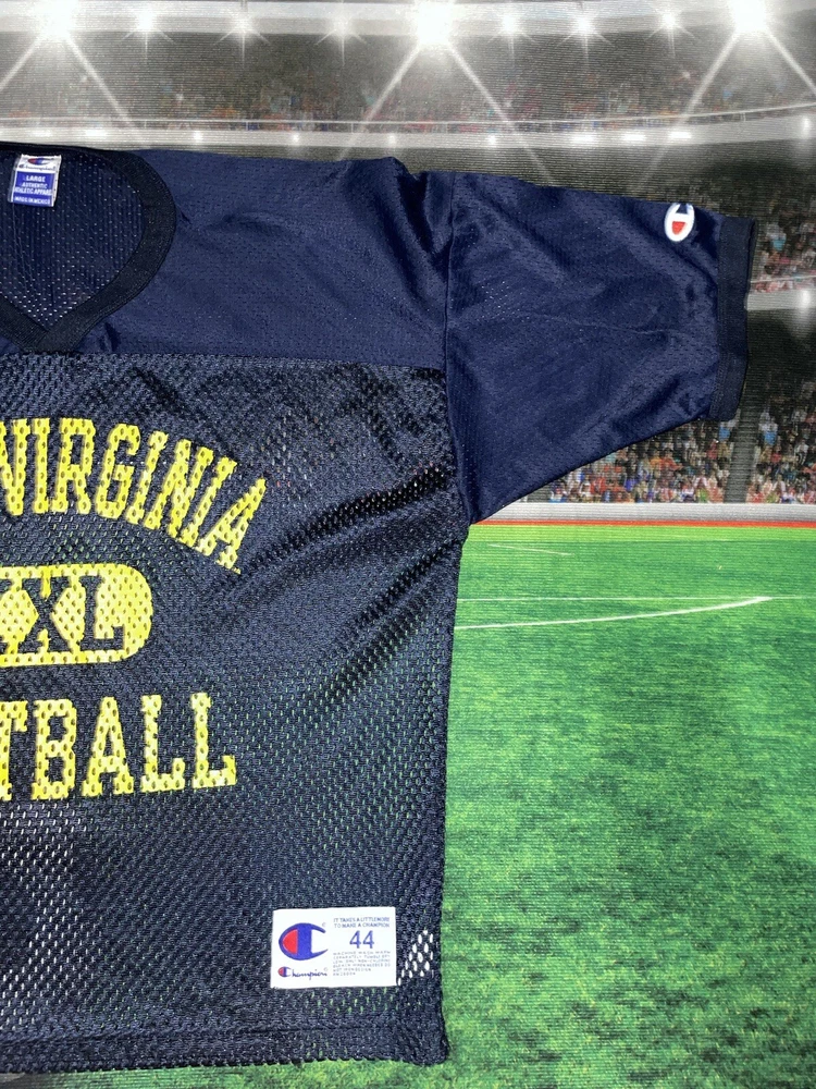 Show off your love for the West Virginia Mountaineers with this vintage football jersey from Champion. The blue unisex adult jersey is perfect for any fan of the team looking to support them during the pre-season. With a size of 44, this jersey is a great fit for anyone who wants to represent their favorite college team in style. The jersey features the team's name and logo, making it a great addition to any fan's collection. Whether you're heading to a game or just want to show off your team spirit, this vintage West Virginia Mountaineers jersey is the perfect choice.