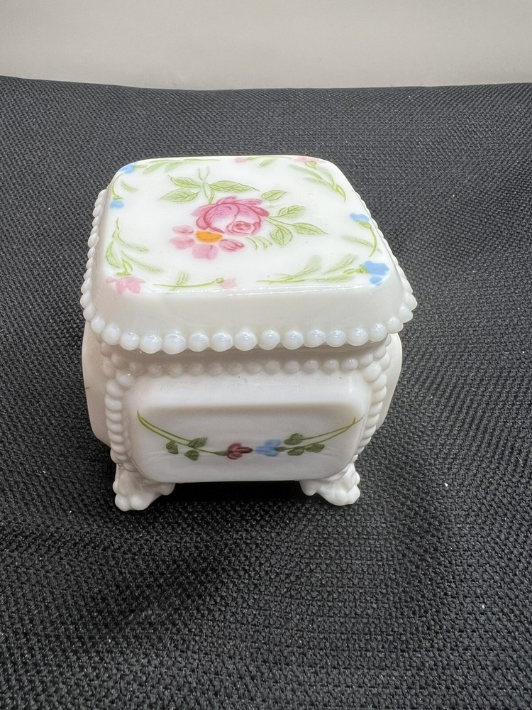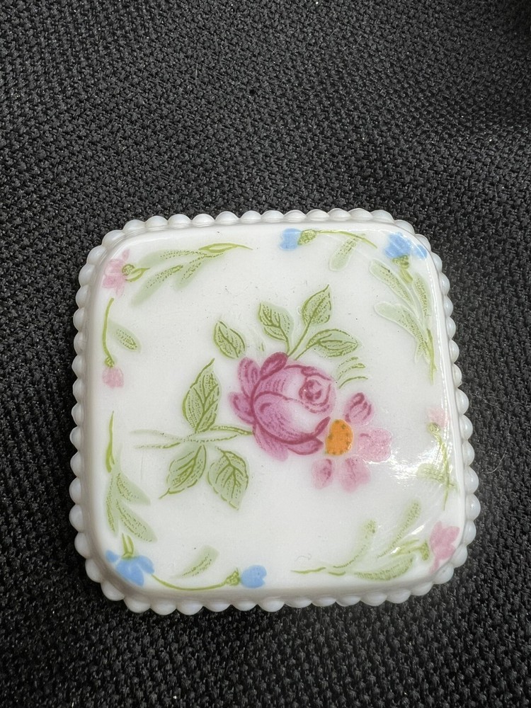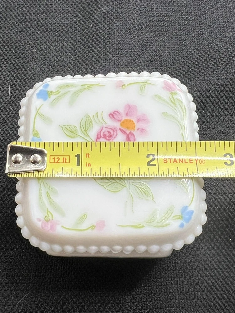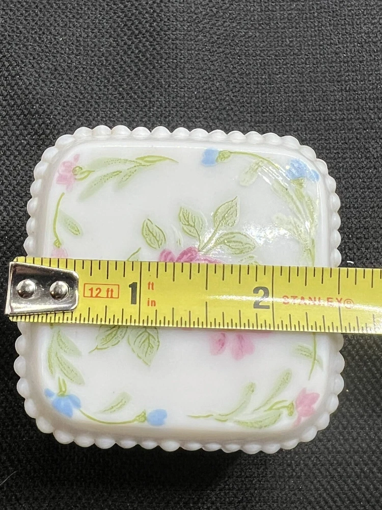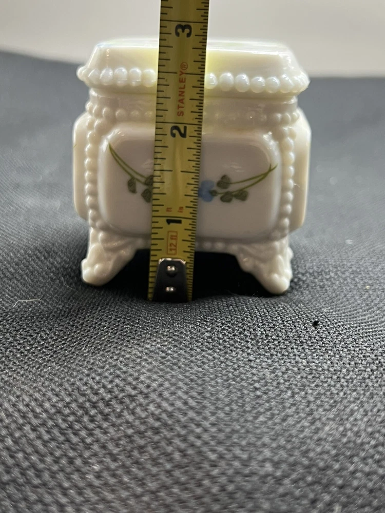 Trinket box is in excellent condition with no chips or cracks. Measurements are in photos. Selling as is, any questions feel free to send a message.
