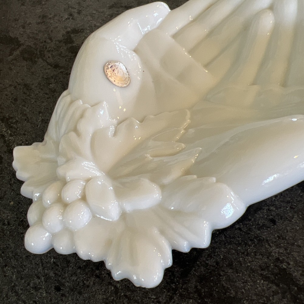 This vintage Westmoreland milk glass dish is stunning! The delicate open hands design makes it so versatile—perfect for holding jewelry, trinkets, or even as a soap dish. The quality is amazing, and it’s in excellent condition with the original price tag still intact. A beautiful, functional piece that adds charm to any space. Highly recommend!