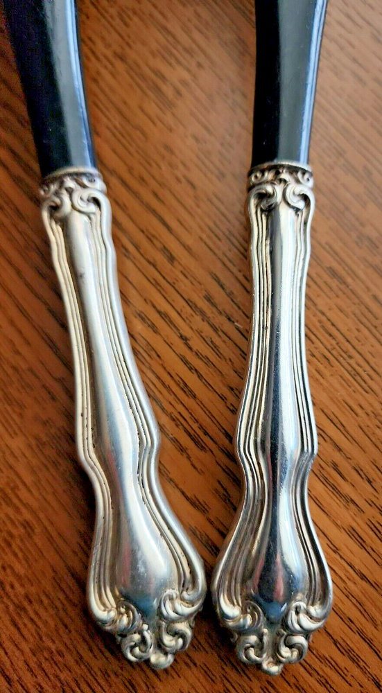 If you like the sterling handles, but not the black bakelite spoon and fork bits, you can always pull them out and make a change as this set was also made with clear plastic serving ends. The intricate pattern was names George & Martha Washington; they're stamped "sterling" and "Westmorland. Genuine, good stuff I've owned since my mother gave them to me in 1968; she'd bought them before going to Washington during World War II. They're nearly 12 inches long; the ends of the sterling are 1 inch wide and the handles are a bit over 4 inches long and if weighted at all, it's light; most of the weigh comes from the resin ends. Be sure to look at my other items because I combine as many items as I can safely pack in one box to save you a bundle on postage. Small items easily go in the same box as large ones and I charge no fees for extra packaging or “handling.” If the total weight makes the USPS charge more, then I do pass that along to you, but if the mail software charges something outrageous, I refund the difference. I typically choose to use USPS Ground Advantage but if I think it’s worth it, I’ll list is as Priority; you can always ask that I adjust the invoice. The USPS has told me 3 times that “we don’t have a ‘fragile class’ anymore, perhaps better, than the average bear. Sorry, no returns. And, please, if you send an offer on something – say I’m asking $24.95 and you offer $9, assume your offer will be rejected. Here's a note about my bead collection in my other listings – I’m old and have been collecting since my gram gave me a necklace of “pop beads” when I was 12. I’ll be listing all of my collection, keeping back a few to put in a necklace I can wear. Some of my beads date back to 20,000 BCE. My documentation is referenced from my learning from archaeologists and anthropologists, not bead traders. I’m not yet selling my reference library, but will list a few old books from time to time. Holding antique beads makes me think of their meaning as talismans, religious protection, small works of art, for use as money, the beads’ origins, and the people who held them before me. Beads, defined by scientists as an item having perforations such that it may be strung, have arguably served as the first currency, were the first form of body adornment (tattoo historians may disagree), were and still are a form of talisman, and were and are still symbols of faith. If you missed out on a listing and want to see if I have others not yet listed, send a message through eBay and I'll list what you want if I have them. I can’t do side deals off eBay.