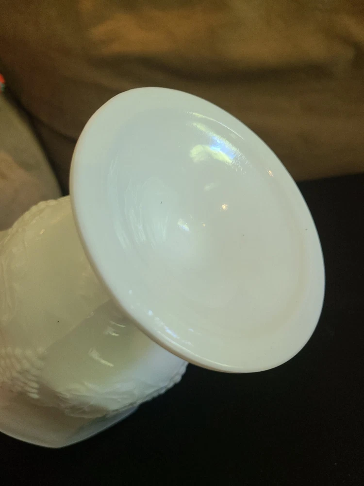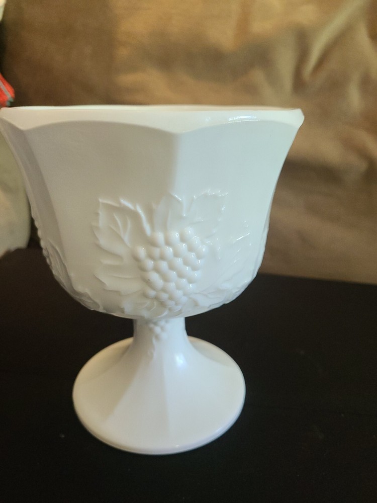Vintage White Milk Glass Grape And Vine Footed Pedestal Candy Dish Bowl 6.25". This is in great pre-owned condition, no chips or cracks! 5.5" diameter.