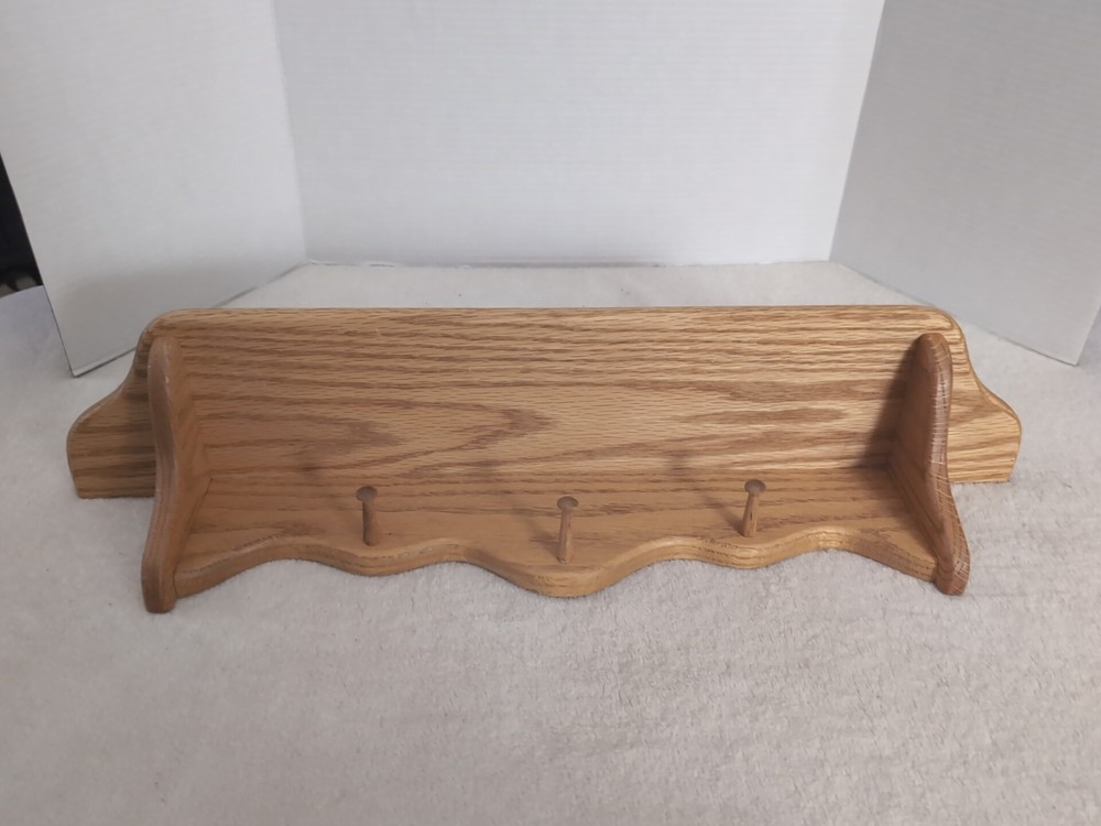 Type:Coat & Hat RacksFinish:MatteNumber of Hooks:1-6Material:WoodItem Length:24 inAssembly Required:NoDepartment:AdultsCountry of Origin:United StatesColor:BrownItem Width:5"Number of Shelves:1Item Height:4.5"Mounting:Hanging, Wall MountedStyle:FarmhouseHook Style:PegBrand:Handmade