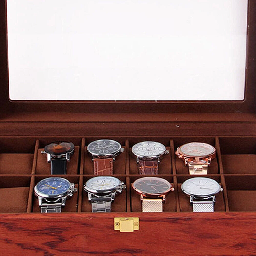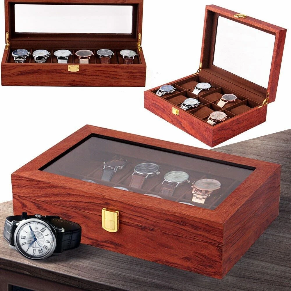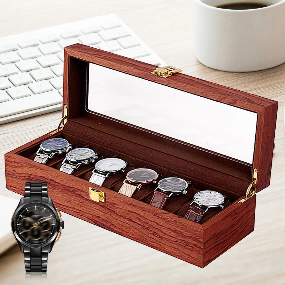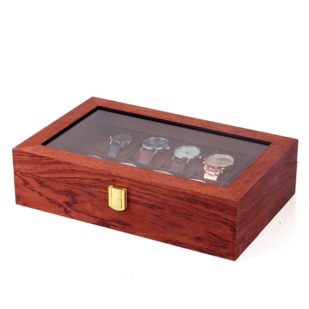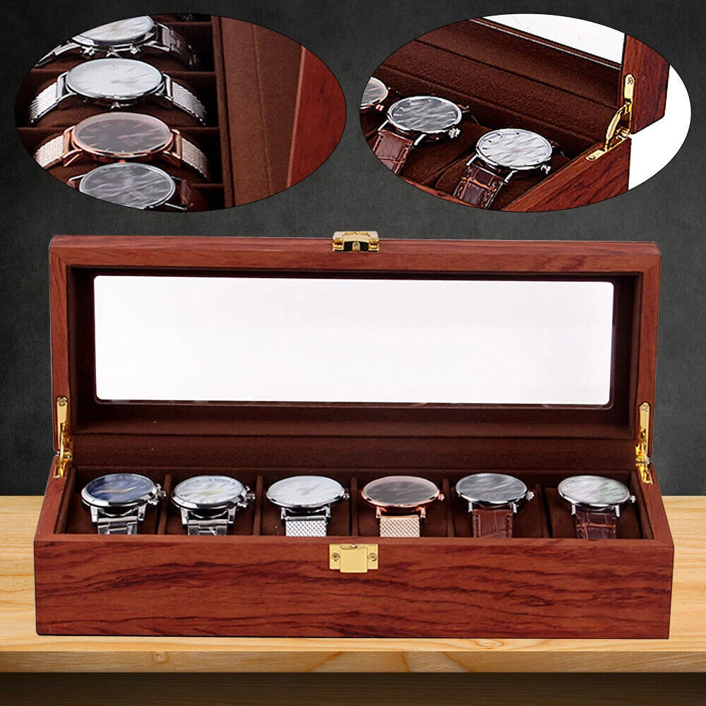 This watch box is a gorgeous and practical way to store and display your timepieces! The rosewood finish gives it a classy vintage look, while the velvet lining keeps watches safe from scratches. The glass top lets you admire your collection at a glance, and the sturdy build feels premium. Perfect for organizing watches neatly—whether at home or in a shop. Love how spacious it is, and the craftsmanship is impressive. Definitely worth it for any watch enthusiast!