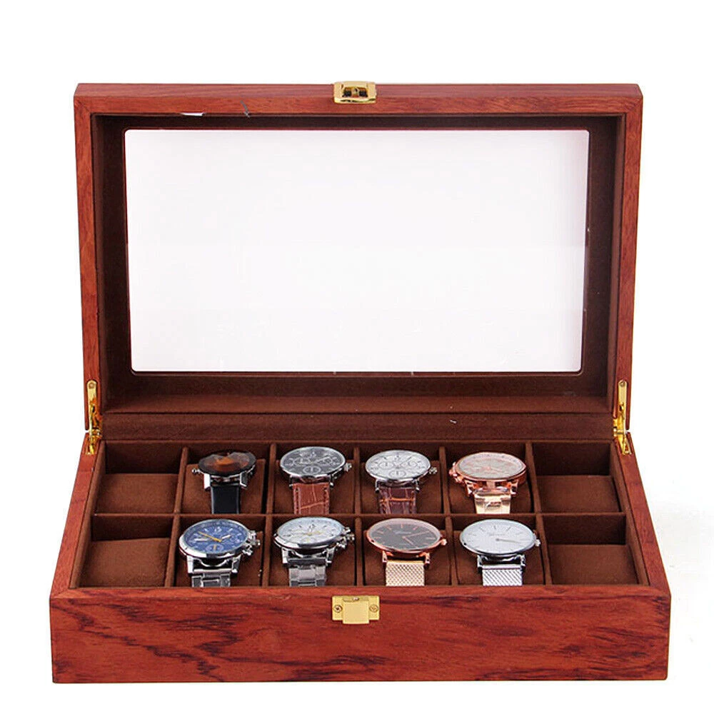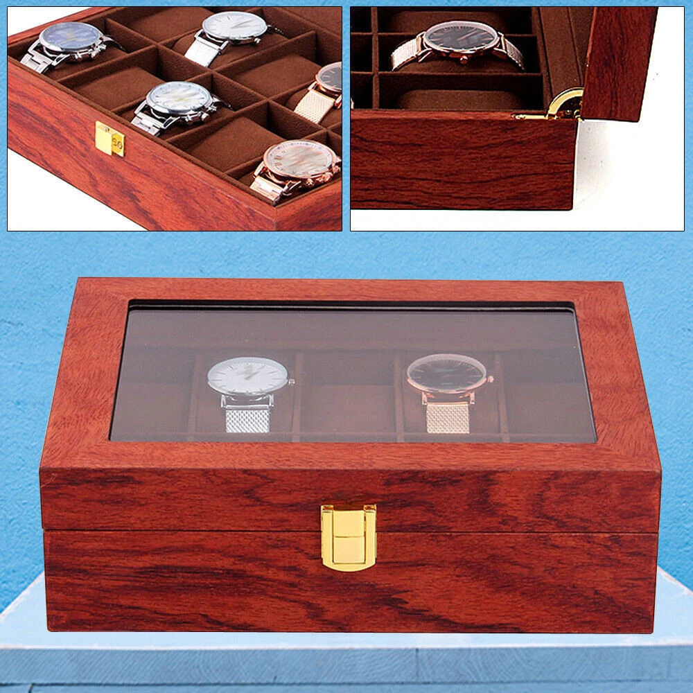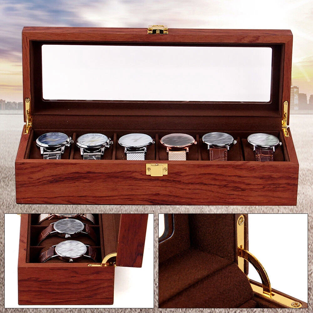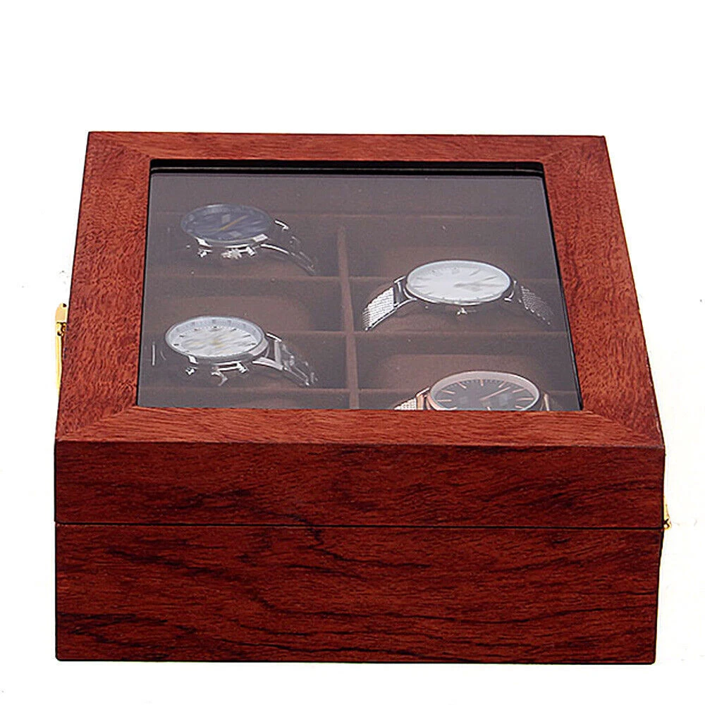 This watch box is a gorgeous and practical way to store and display your timepieces! The rosewood finish gives it a classy vintage look, while the velvet lining keeps watches safe from scratches. The glass top lets you admire your collection at a glance, and the sturdy build feels premium. Perfect for organizing watches neatly—whether at home or in a shop. Love how spacious it is, and the craftsmanship is impressive. Definitely worth it for any watch enthusiast!