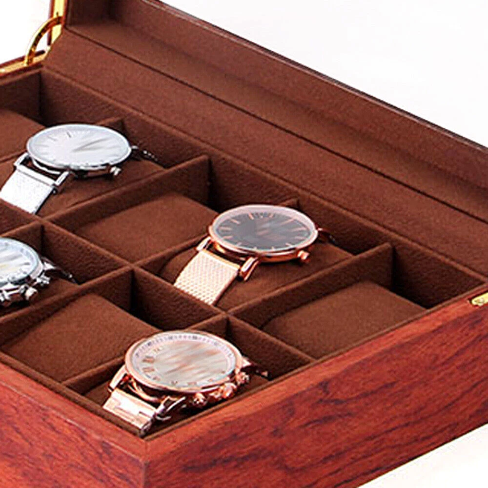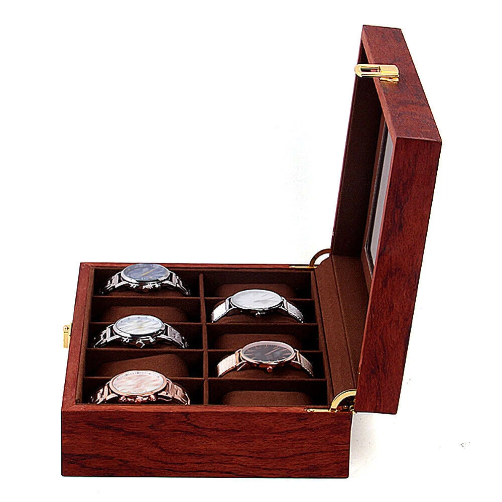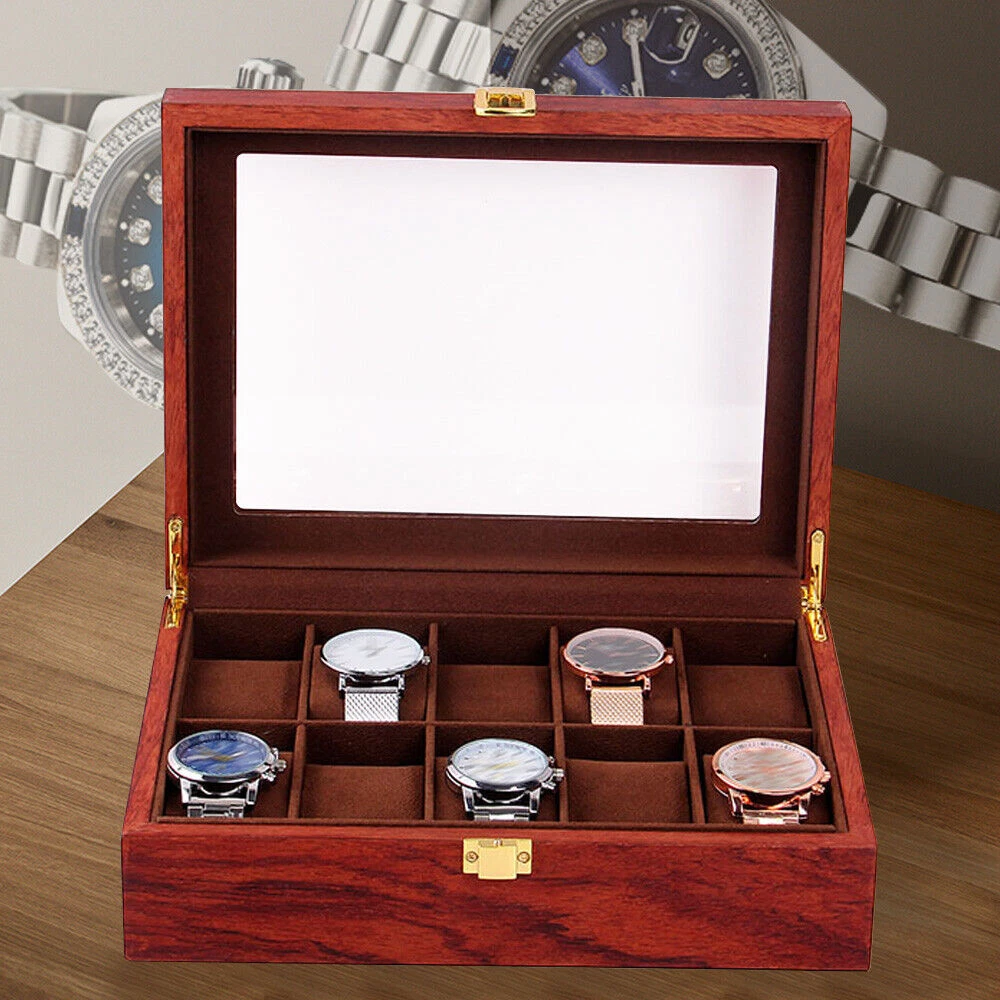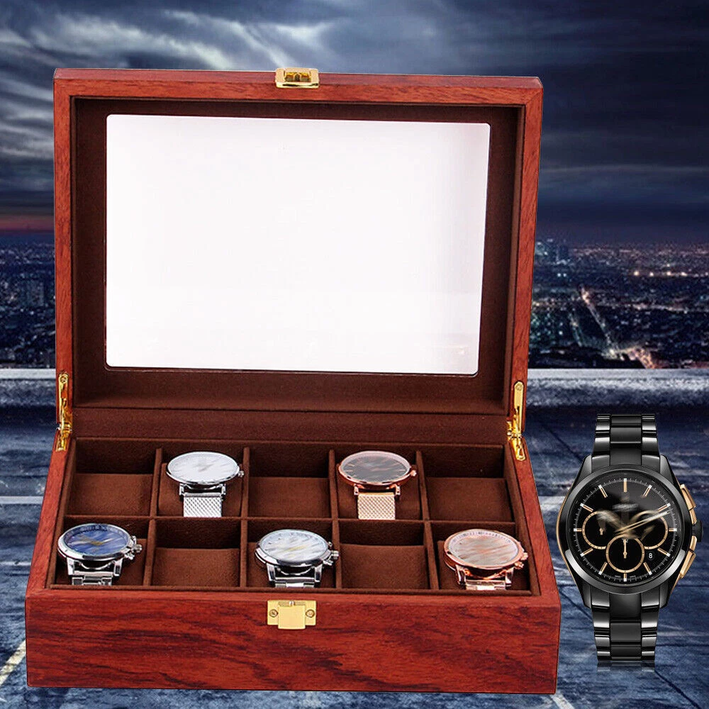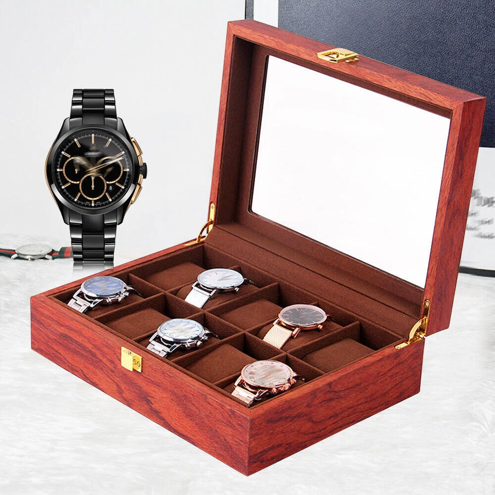 This watch box is a gorgeous and practical way to store and display your timepieces! The rosewood finish gives it a classy vintage look, while the velvet lining keeps watches safe from scratches. The glass top lets you admire your collection at a glance, and the sturdy build feels premium. Perfect for organizing watches neatly—whether at home or in a shop. Love how spacious it is, and the craftsmanship is impressive. Definitely worth it for any watch enthusiast!