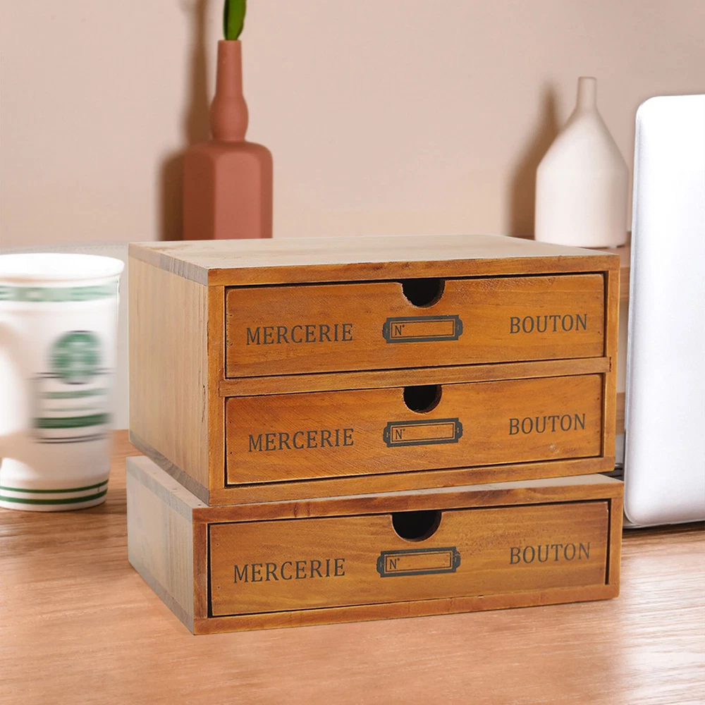 Description Crafted from high-quality wood, this 2-tier desk organizer brings order to your workspace while infusing it with a touch of classic elegance. Each drawer is meticulously constructed to ensure smooth operation and durability, making it ideal for organizing stationery, documents, or small accessories in both home and office environments. Details Label Slots: Each drawer has label slots for easy categorization and quick access. Comfortable Handles: Each drawer has an ergonomic handle that is not only comfortable but also easy for you to pull the drawer. Smooth Edge: The rounded and smooth edges not only add to the aesthetics of the product but also improve the safety of use.