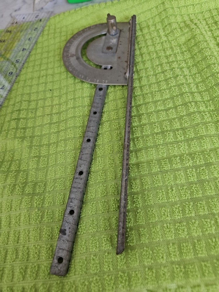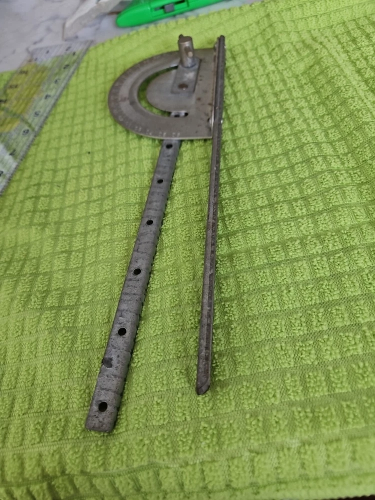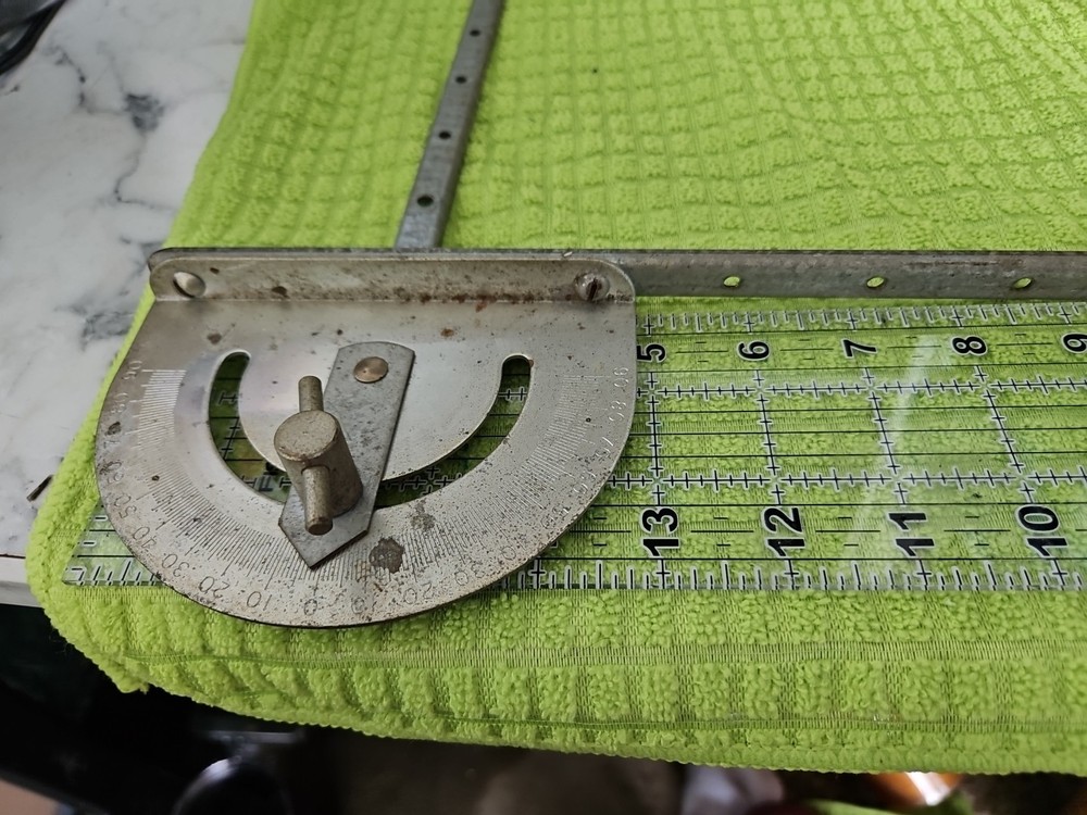 Vintage Miter Gauge. Shows normal signs of use. Scuffs scratches some spots of surface rust.