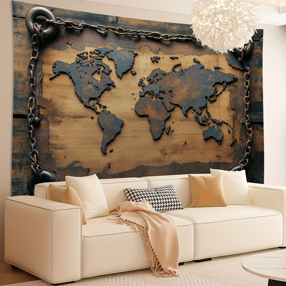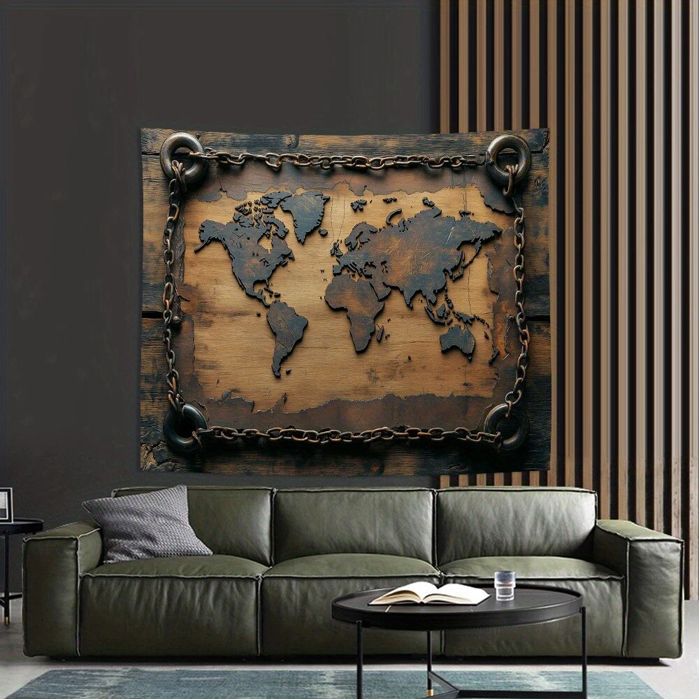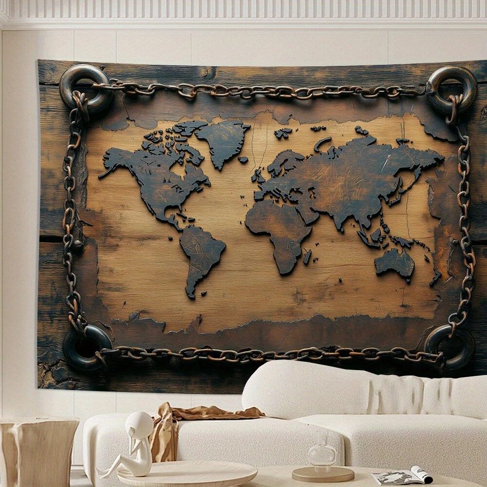 Vintage World Map Tapestry - Polyester Wall Hanging for Living Room, Bedroom, Of