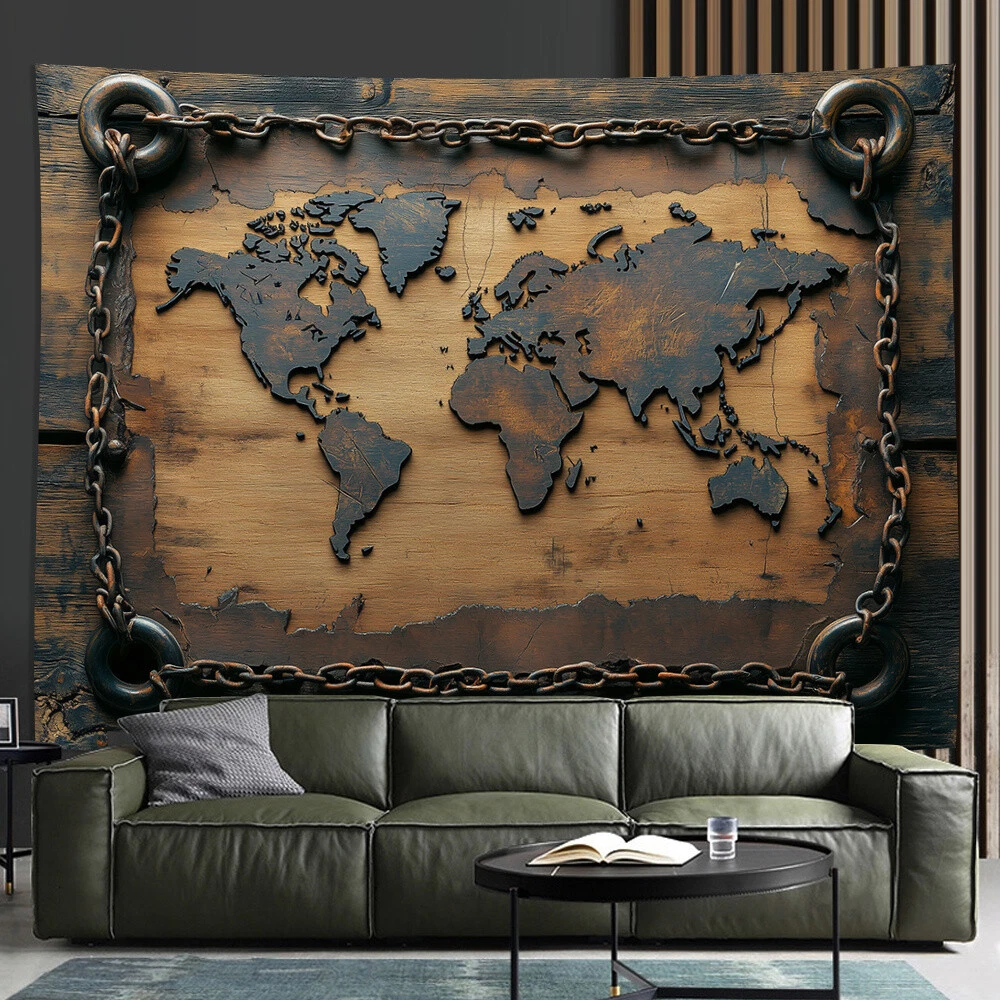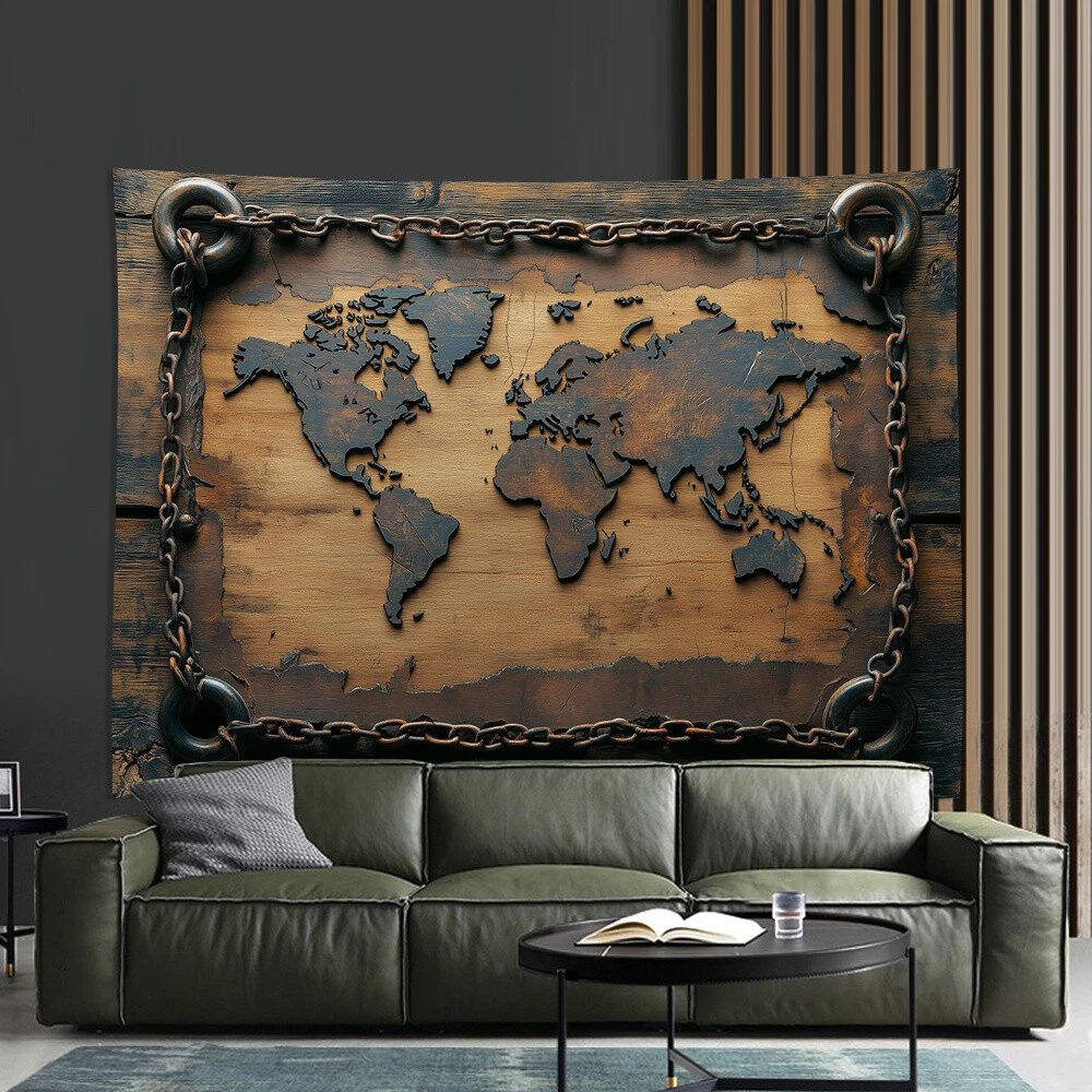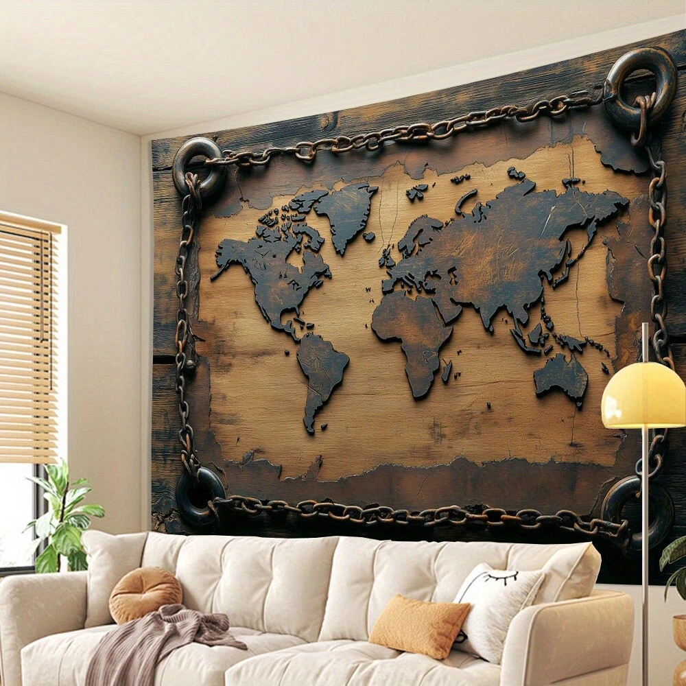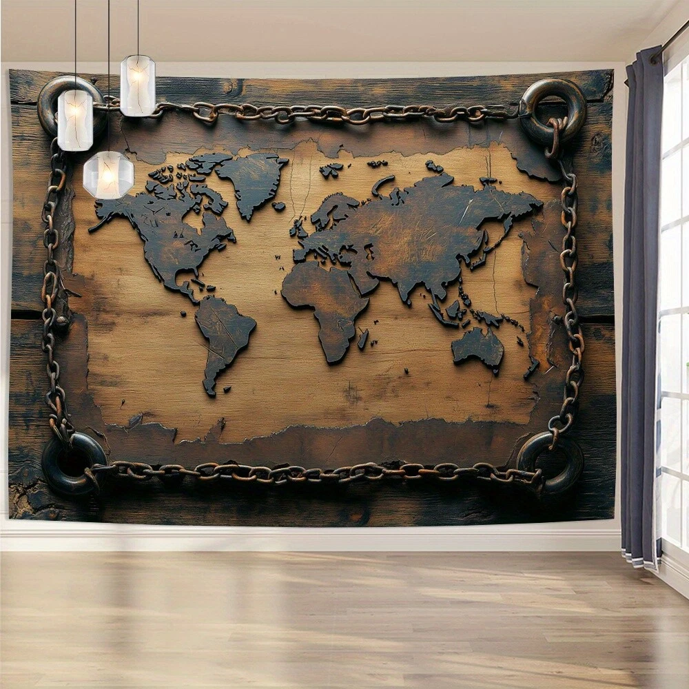 Vintage World Map Tapestry - Polyester Wall Hanging for Living Room, Bedroom, Of