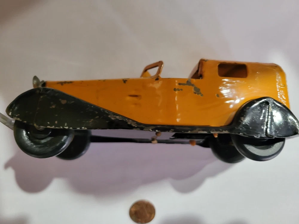 Vintage Wyandotte? Metal Toy Car. I was told this was Wyandotte, but I am not sure. It has some wear / paint loss. If there is a penny in the picture, it is to give an idea of size. Please see the picture(s). Please ask any questions you have. Payment must be made within 3 days unless other arrangements are made. Payment by Paypal or through Ebay only. PA residents must pay sales tax on taxable items
